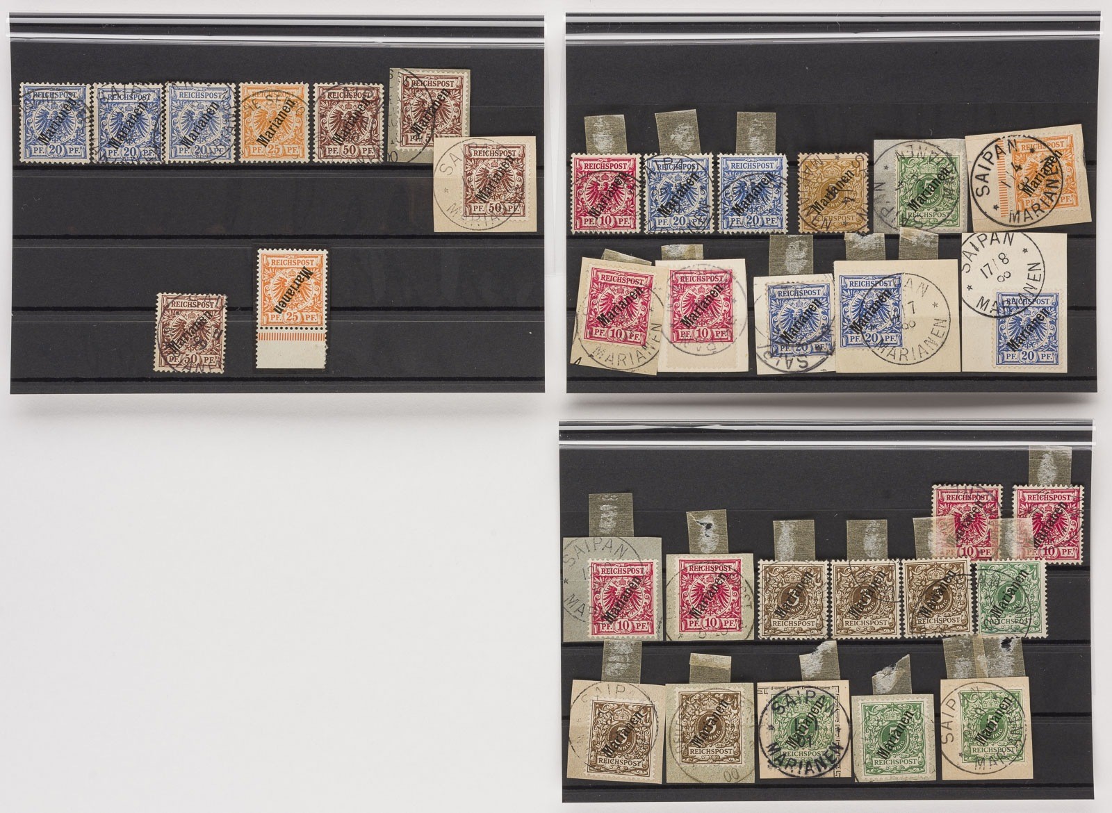 Marianen Vorläufer 33 Marken Krone/Adler diagonaler schwarzer Aufrduck 'Marianen'. unterscheidliche