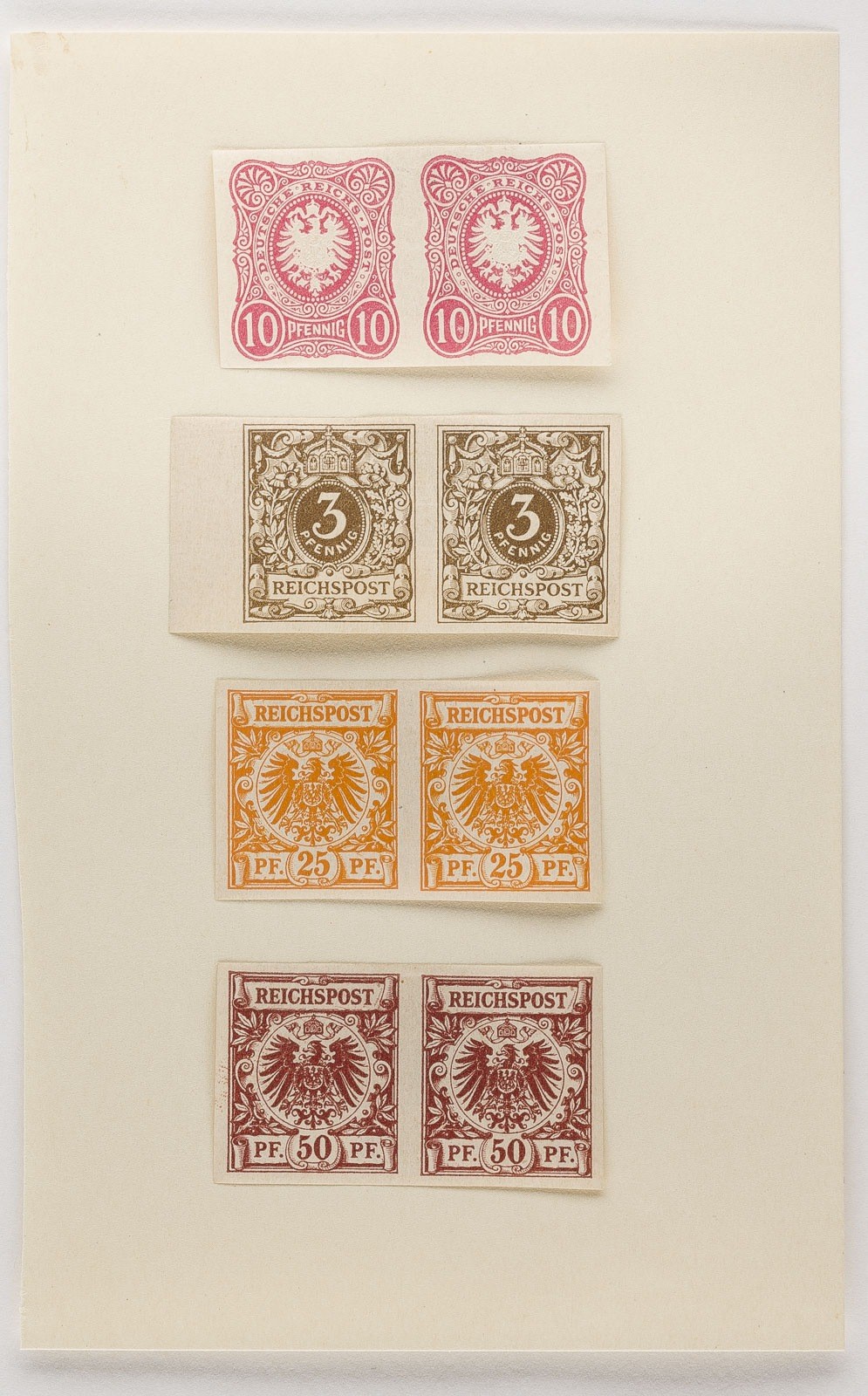 Deutsche Reichspost Konvolut diverse Marken: Jeweils paarweise ungezähnt, Freimarken: 3 Pfennige, 10 Pfennige,