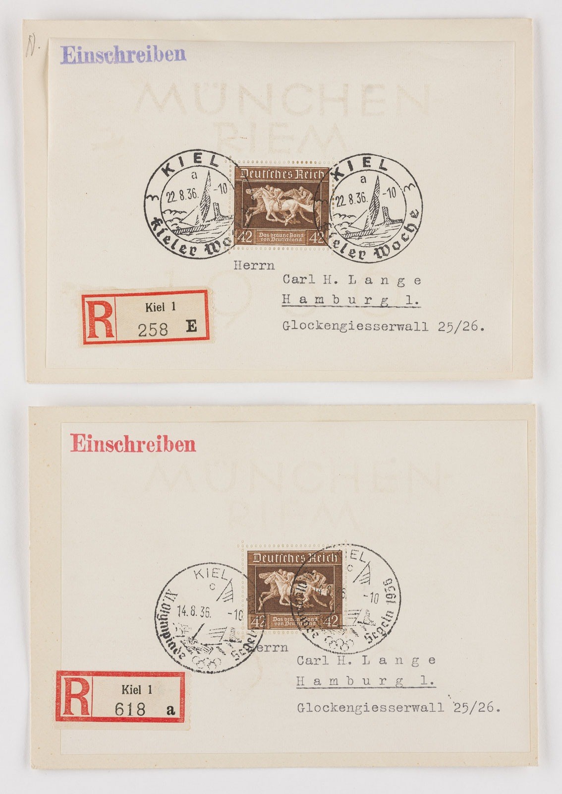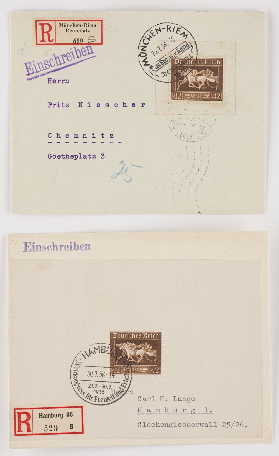 Block Galopprennen 'Das Braune Band von Deutschland', 1936. Jeweils Rundstempel und