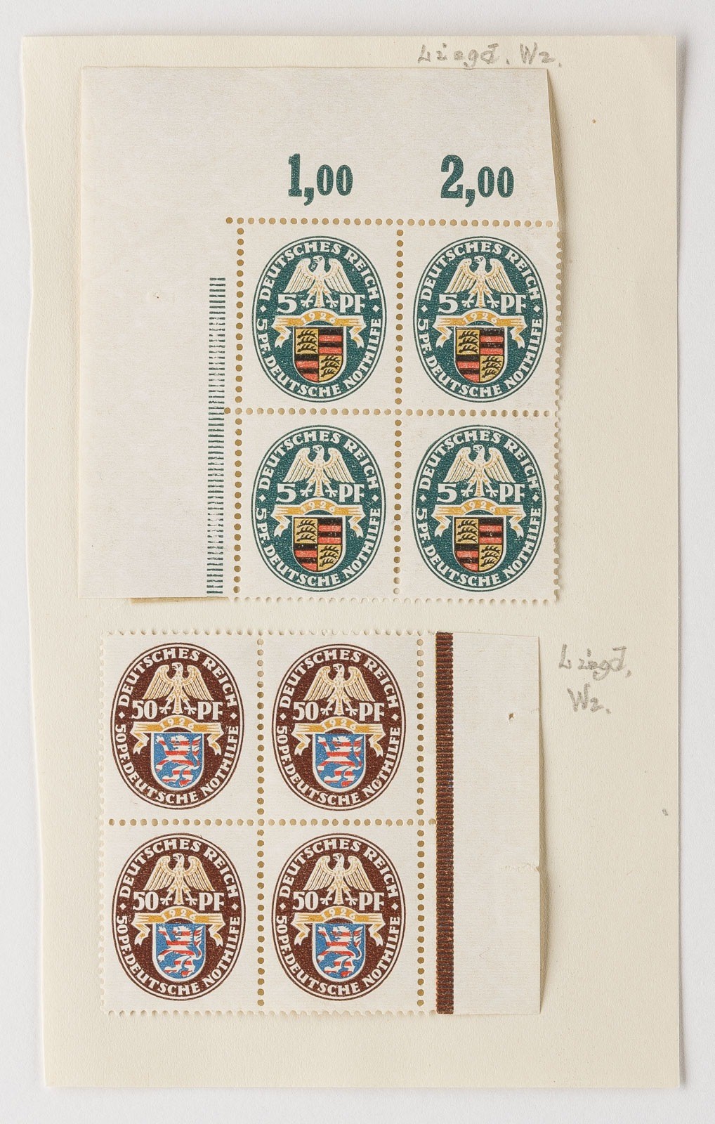Deutsche Reichspost Konvolut zwei Einschreiben-Inlandsbriefe nach Chemnitz und 8 Marken: Deutsche Nothilfe.