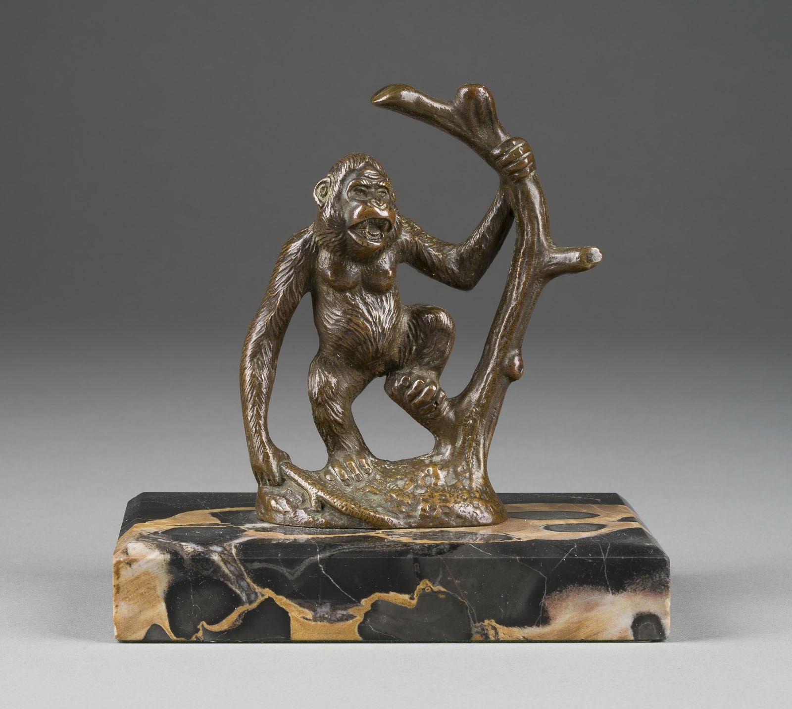 Bronze, braun patiniert, auf naturalistischer Plinthe, rechteckiger Marmorsockel (H. 2,5 cm). Ges.-H. 14, B. 13, T. 8,5 cm, Gew. ca. 1,17kg. Min. ber.
