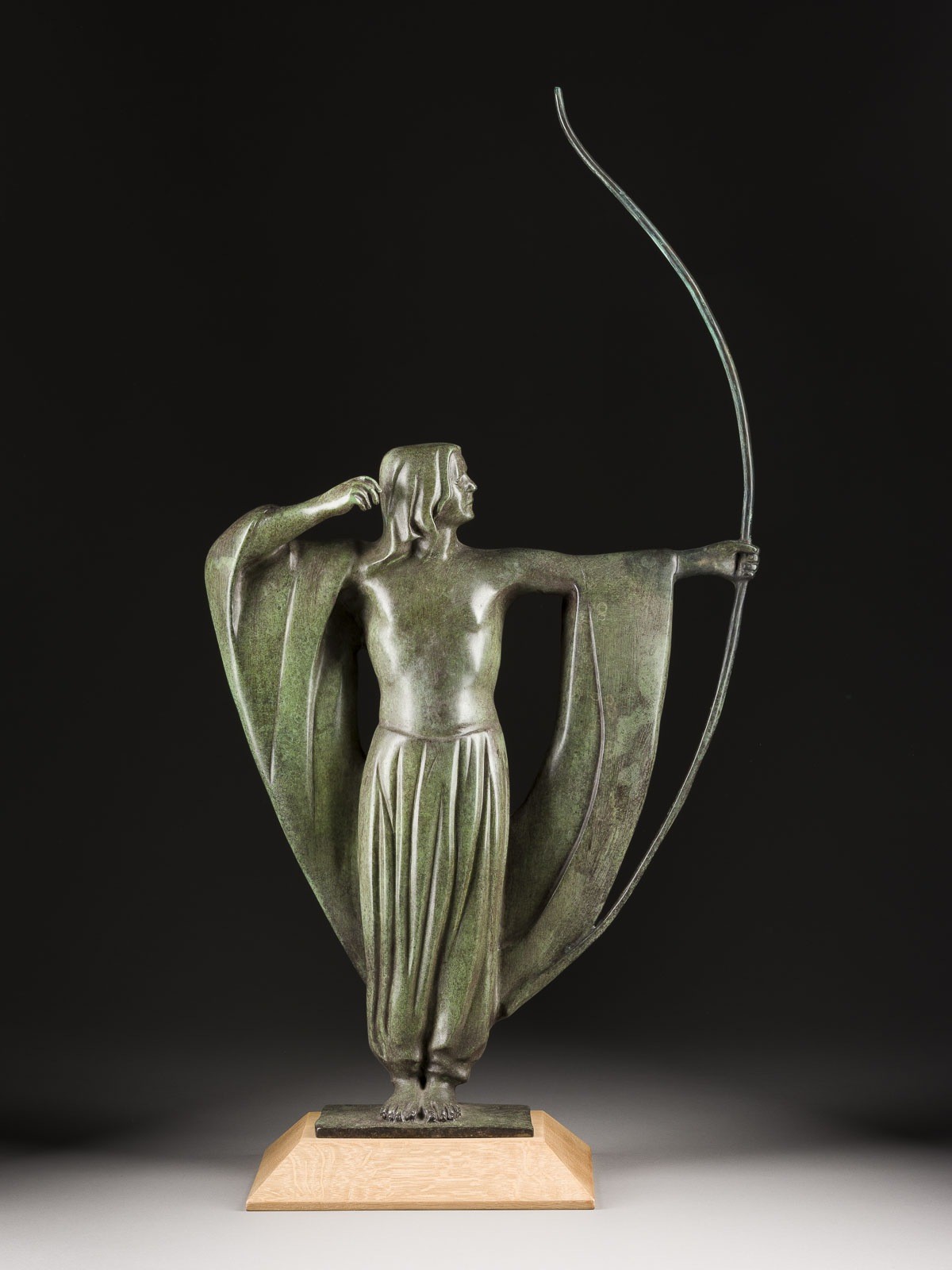 Bronze, dunkel patiniert, auf rechteckiger Plinthe und Holzsockel (H. 6 cm). Ges.-H. 83, B. 41, T. 19 cm, Gew. ca. 10,48kg. Unsigniert, in der Art von Kelety. Min. ber und best.