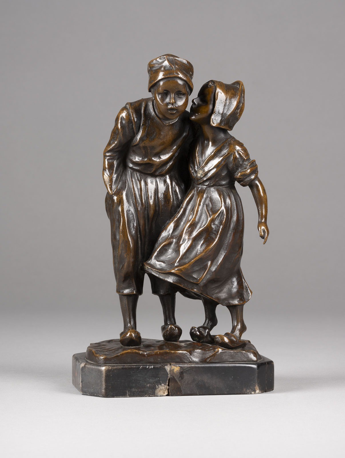 Bronze, braun patiniert, auf Marmorsockel (H. 2 cm). Ges.-H. 23,5, B. 13, T. 9,5 cm, Gew. ca. 2,88kg. Unsigniert, auf der Plinthe Giessereimarke 'Martin & Piltzing Berlin. Part. Verlust der Patina und min. ber., Sockel besch.