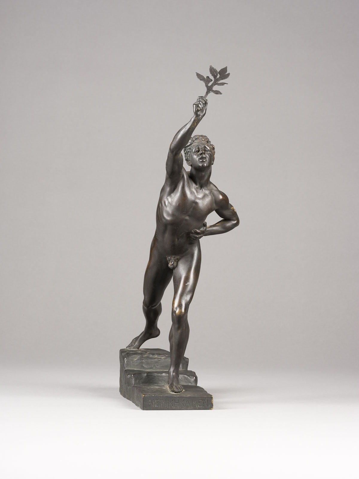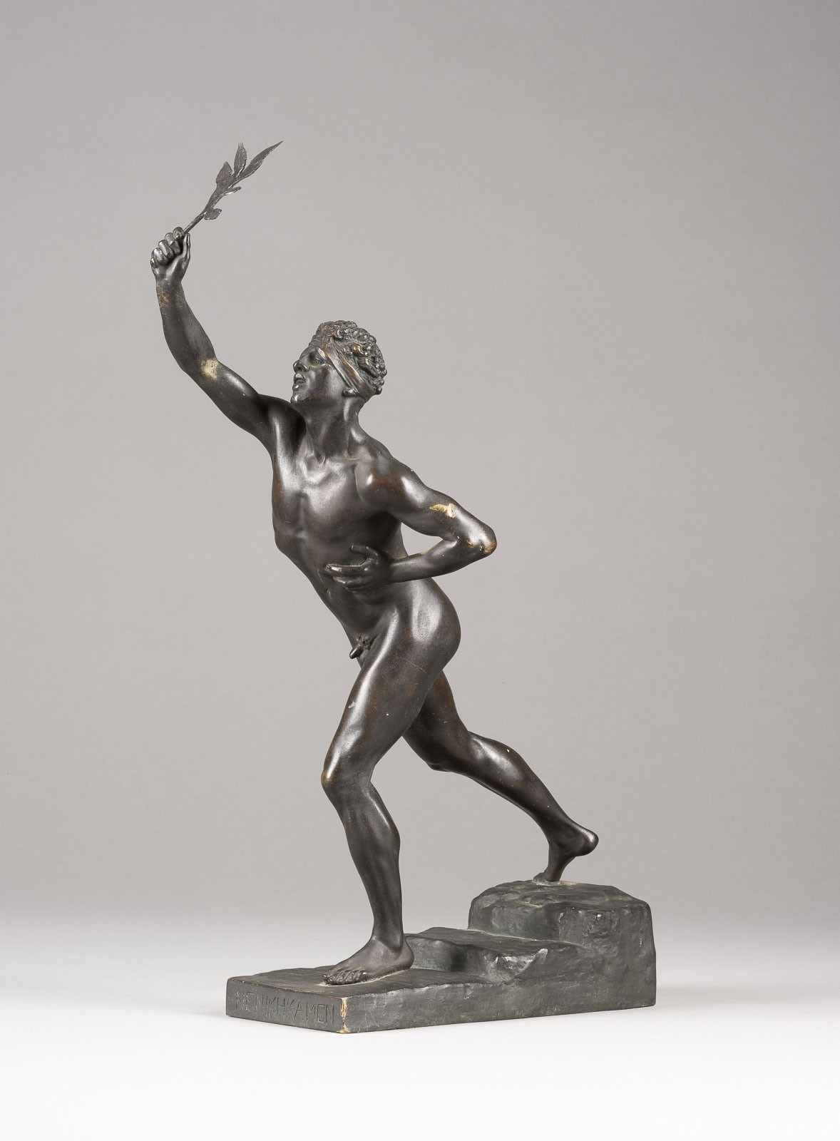 Bronze, dunkel patiniert, auf einer Plinthe (H. 5 cm). Ges.-H. 36,5, B. 27, T. 8 cm, Gew. ca. 3,13 kg. Vorderseitig betitelt, seitlich bezeichnet 'Max Kruse' und rückseitig 'Gladenbeck GmbH'. Part. Verlust der Patina und ber., best.