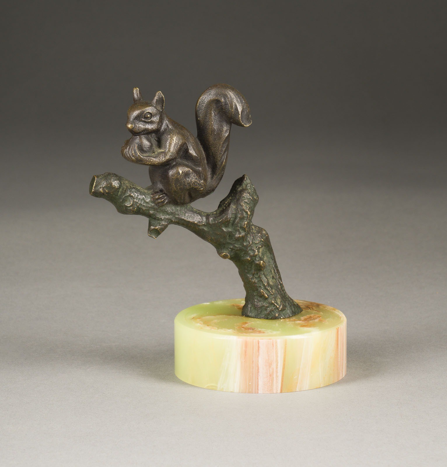 Bronze, dunkel patiniert, auf rundem Sockel (H. 2,5 cm). Figur.-H. 11, B. 12, T. 8 cm, Gew. ca. 0,54kg. Unsigniert. Min. ber.