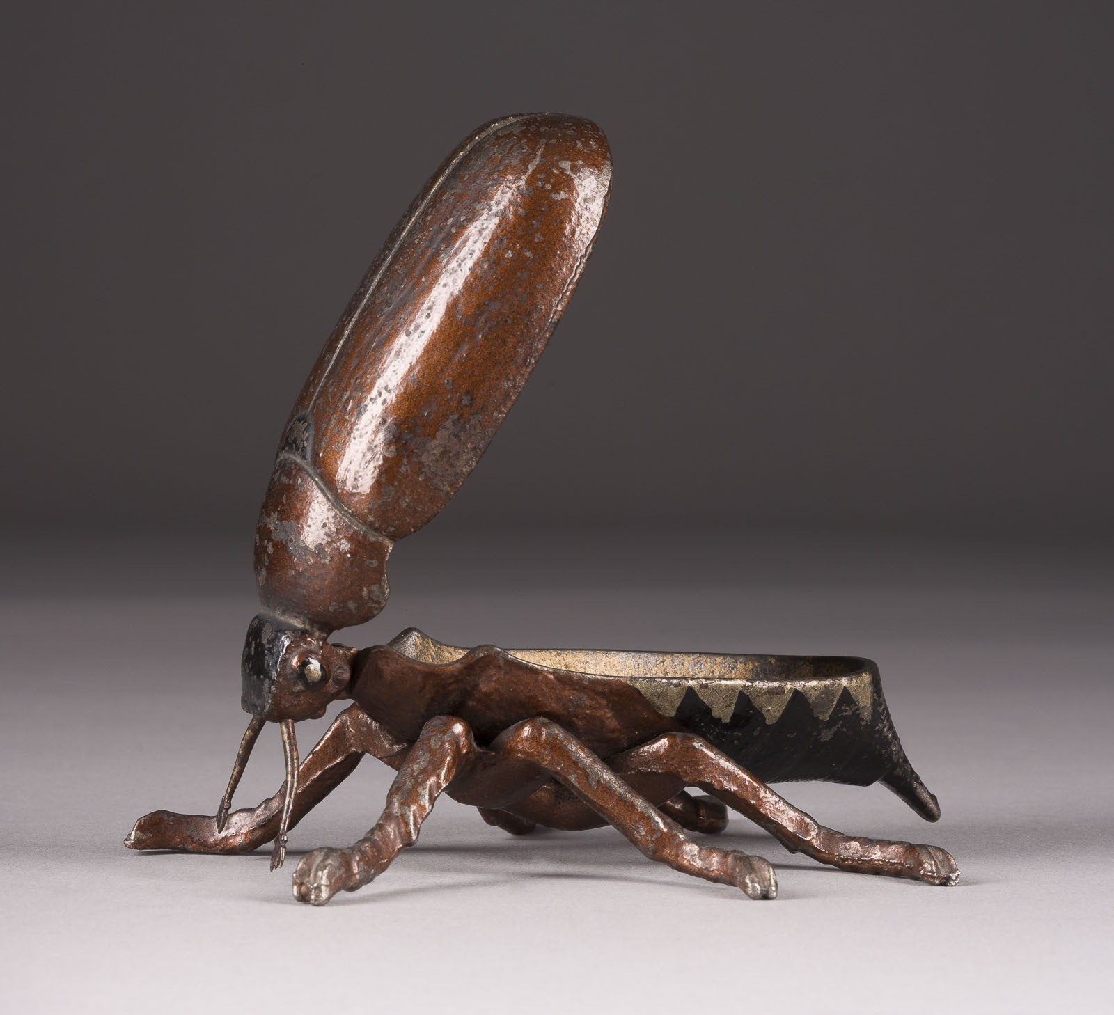 Metallguss, polychrom gefasst. H. 5, B. 13,5, T. 10 cm, Gew. ca 0,3kg. Innen nummeriert '958'. Part. Verlust der Patina und ber, Farbverluste.
