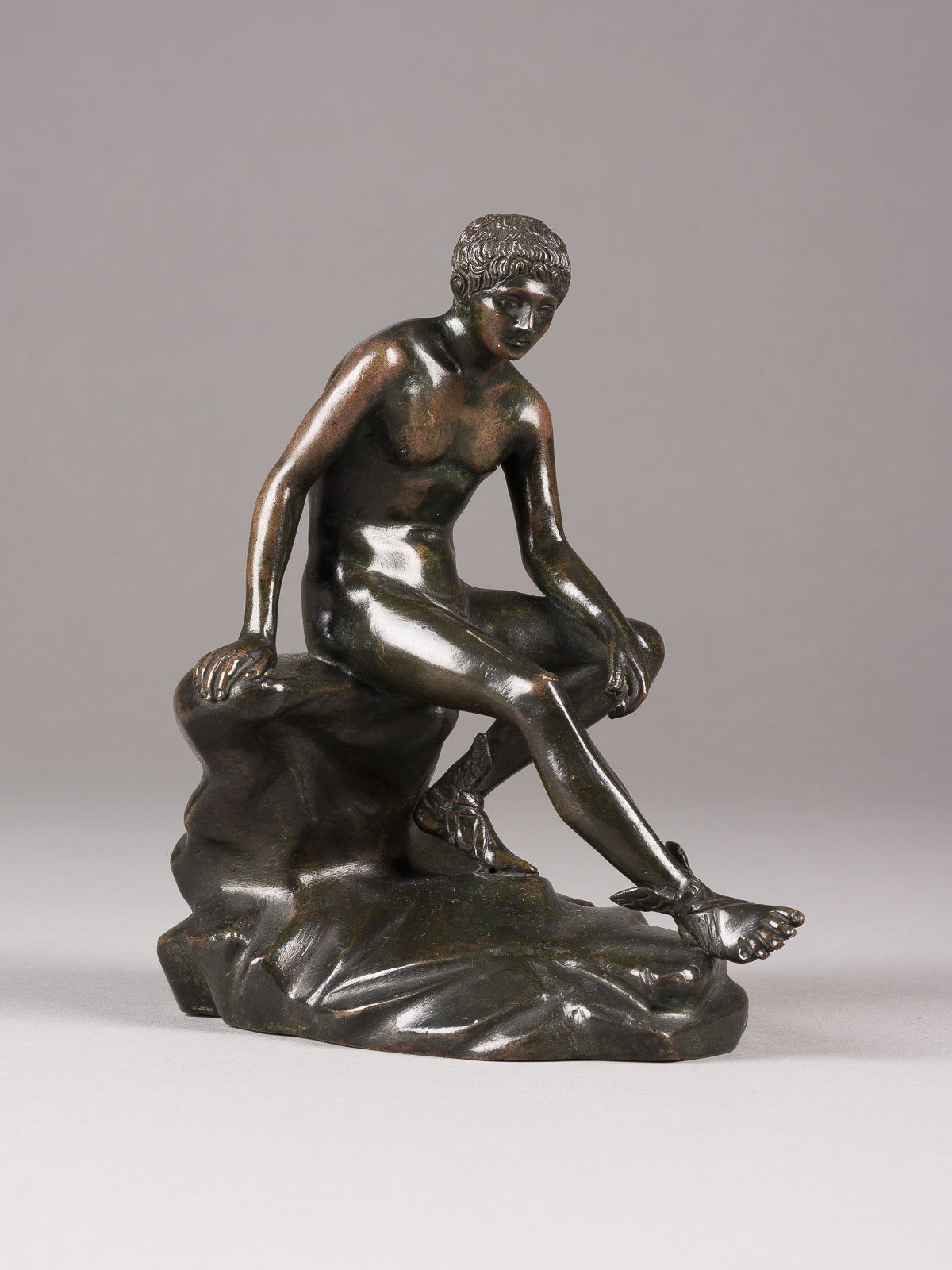 Bronze, dunkel patiniert. H. 17, B. 14, T. 10 cm, Gew. ca. 1,1 kg. Nach dem griechischen Bildhauer Piston aus der Villa dei Papiri in Herculaneum. Part. Verlust der Patina.