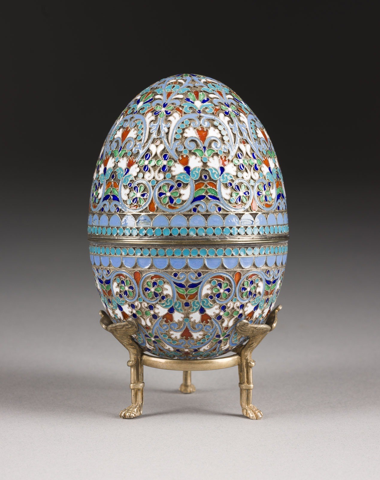 GROSSES CLOISONNÉ-EMAIL-EI AUF STÄNDER