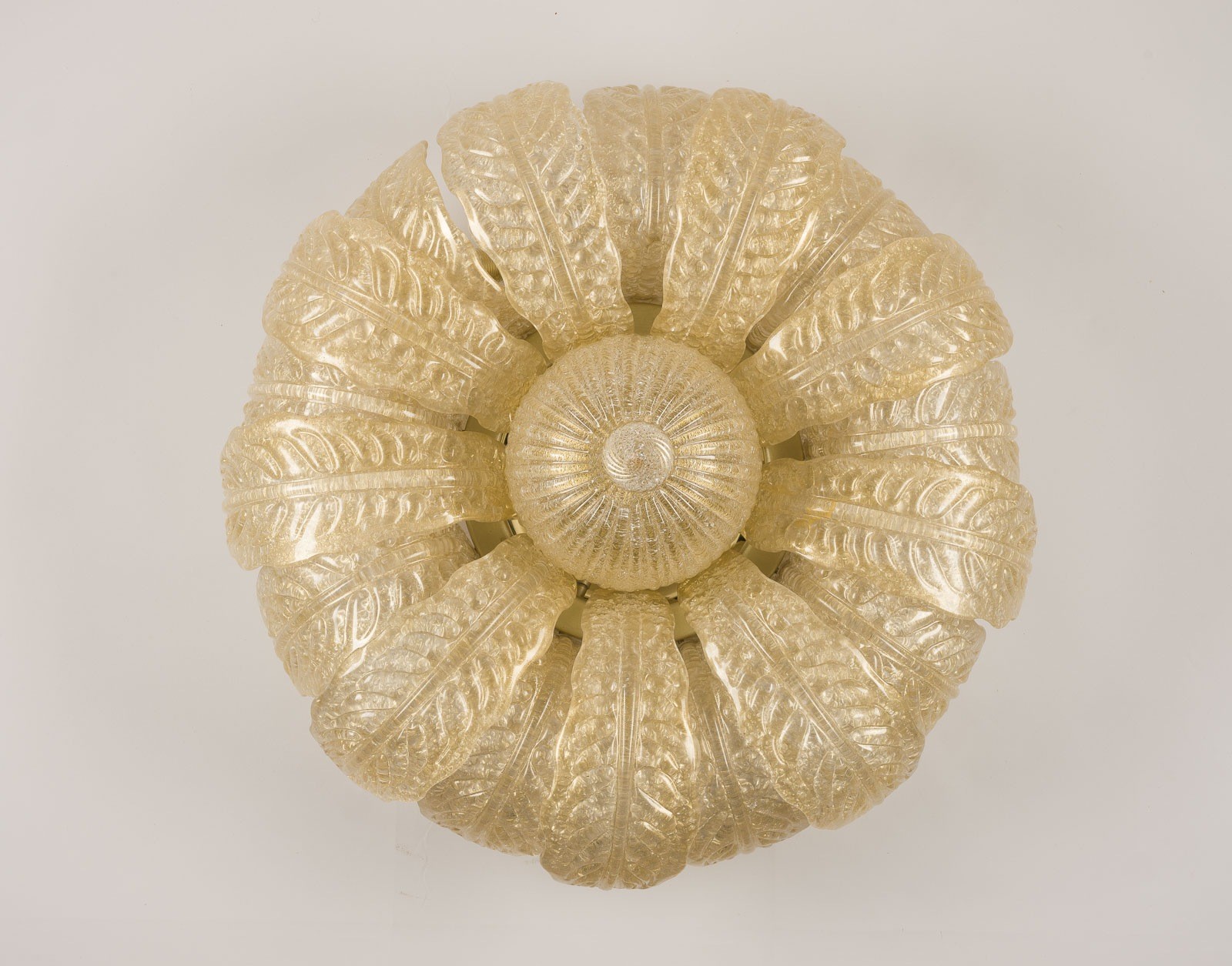 'Rugiada' Glas m. Einschmelzungen v. Goldfolie, Messing, poliert u. lackiert, 11-flg. elektrifiziert. H. 30 cm, D. 63 cm. Minimale Gebrauchsspuren.