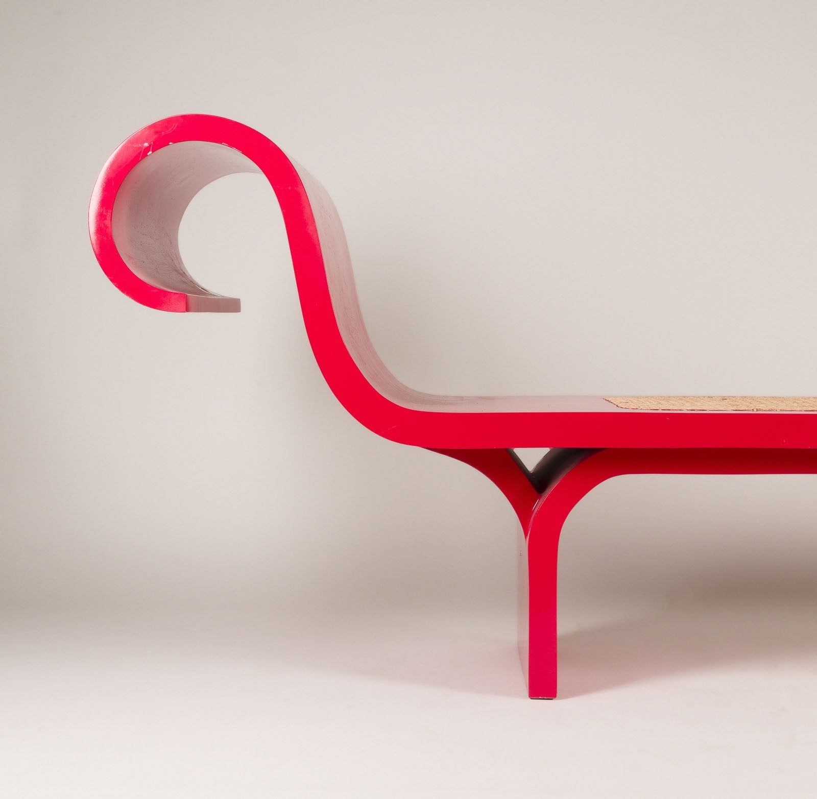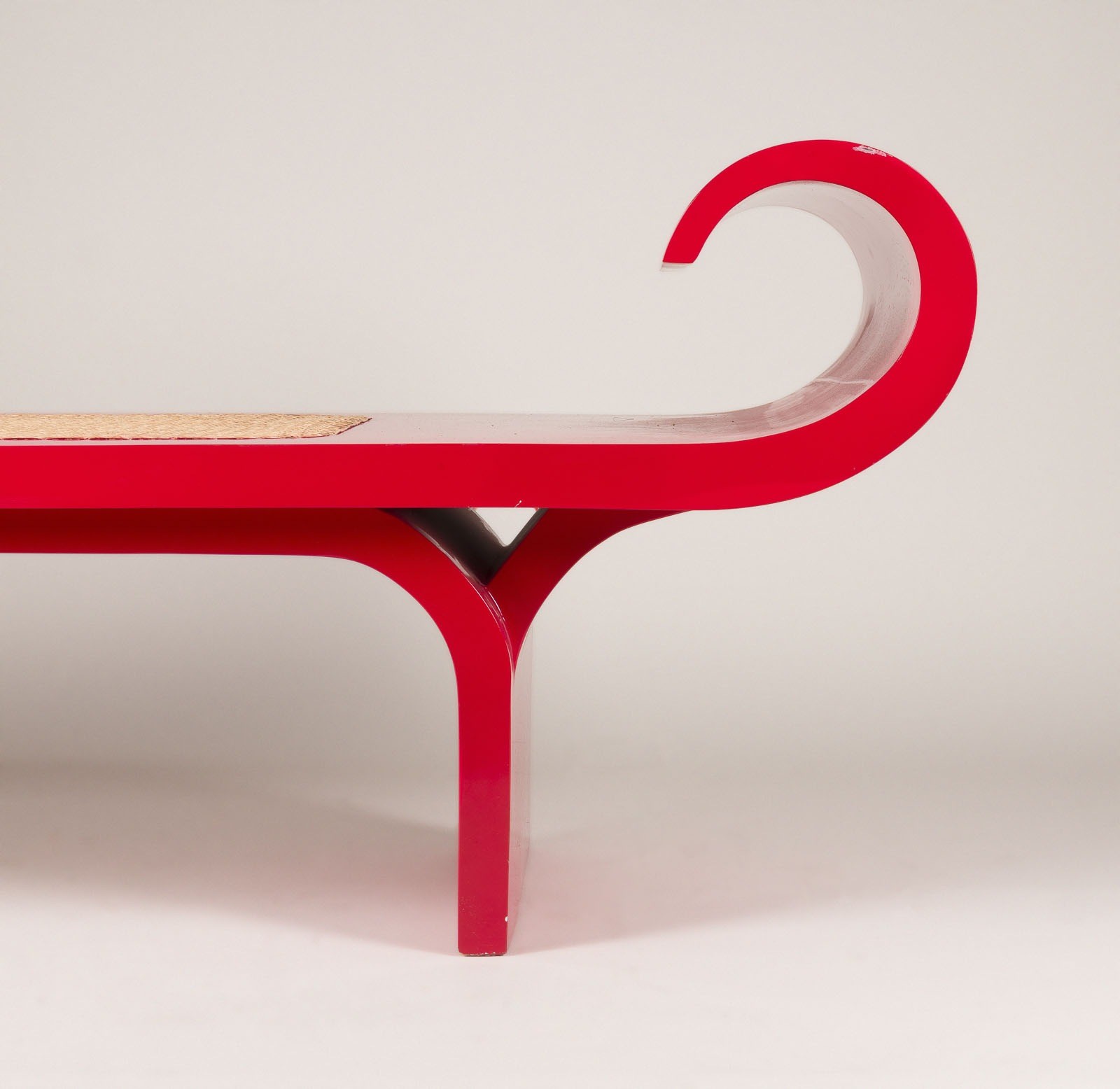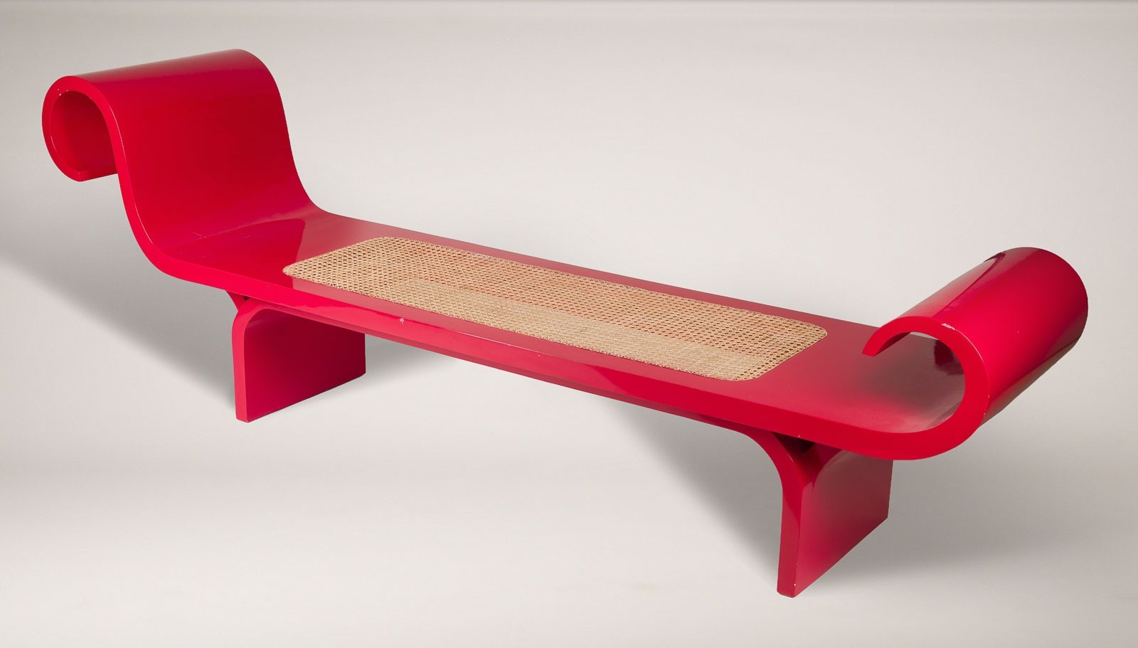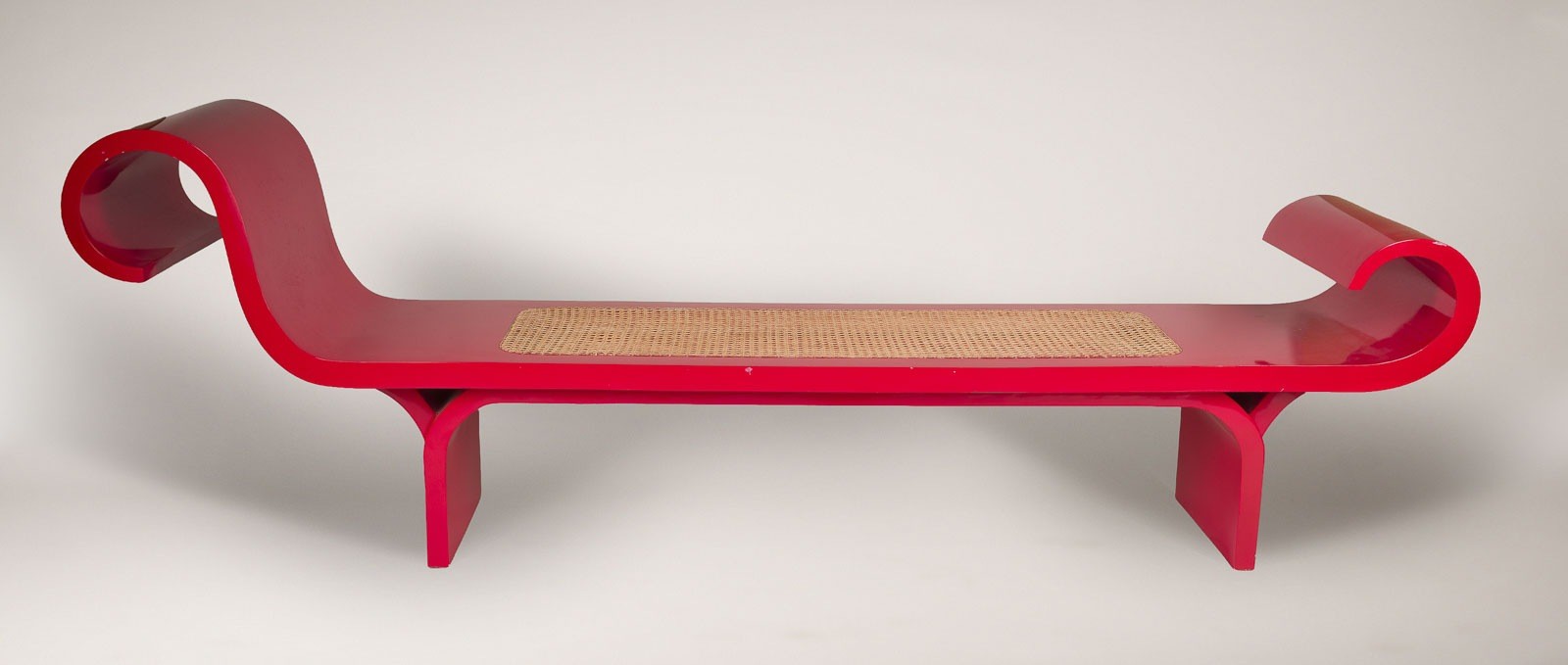 Holz lackiert, Peddigrohrgeflecht. H. ca. 80 cm, B. 250 cm, D. 55 cm. Leichte Gebrauchsspuren, teilw. min. best..