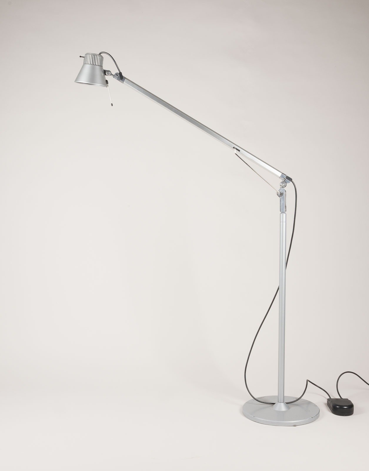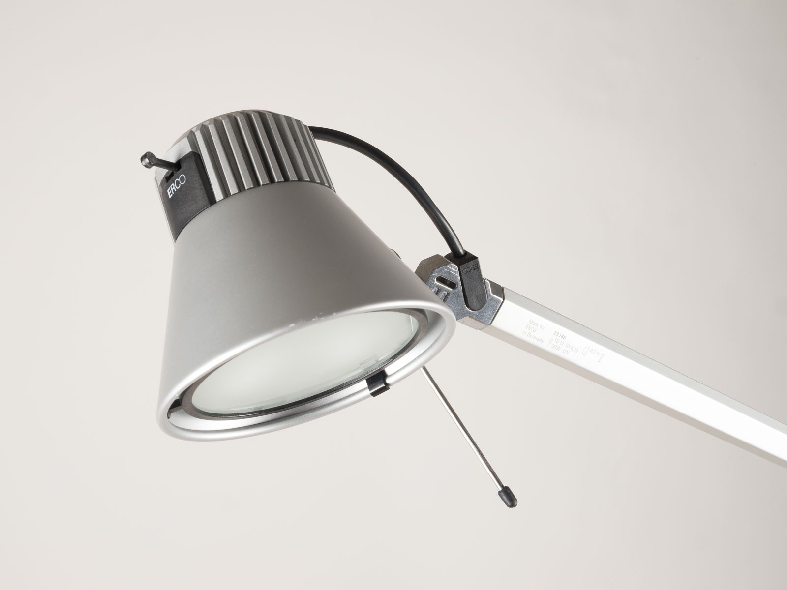 Aluminium eloxiert, Stahl lackiert, 1-flg. elektrifiziert. H. min. 135 cm, D. 30 cm (Sockel). Am Reflektor bez. 'ERCO'. Gebrauchsspuren, Lackierung teilw. best..