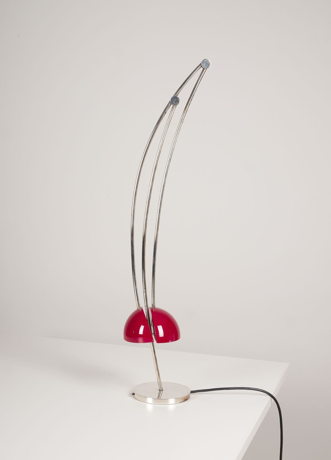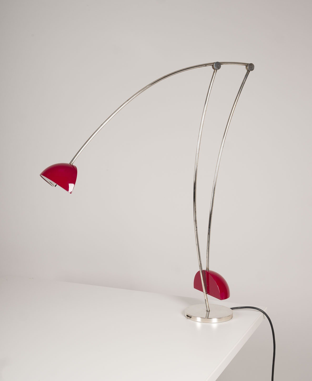 Messing versilbert, Aluminium lackiert, 1-flg. elektrifiziert. H. 69 cm, B. max. 59 cm, T. 122 cm. Sehr leichte Gebrauchsspuren.