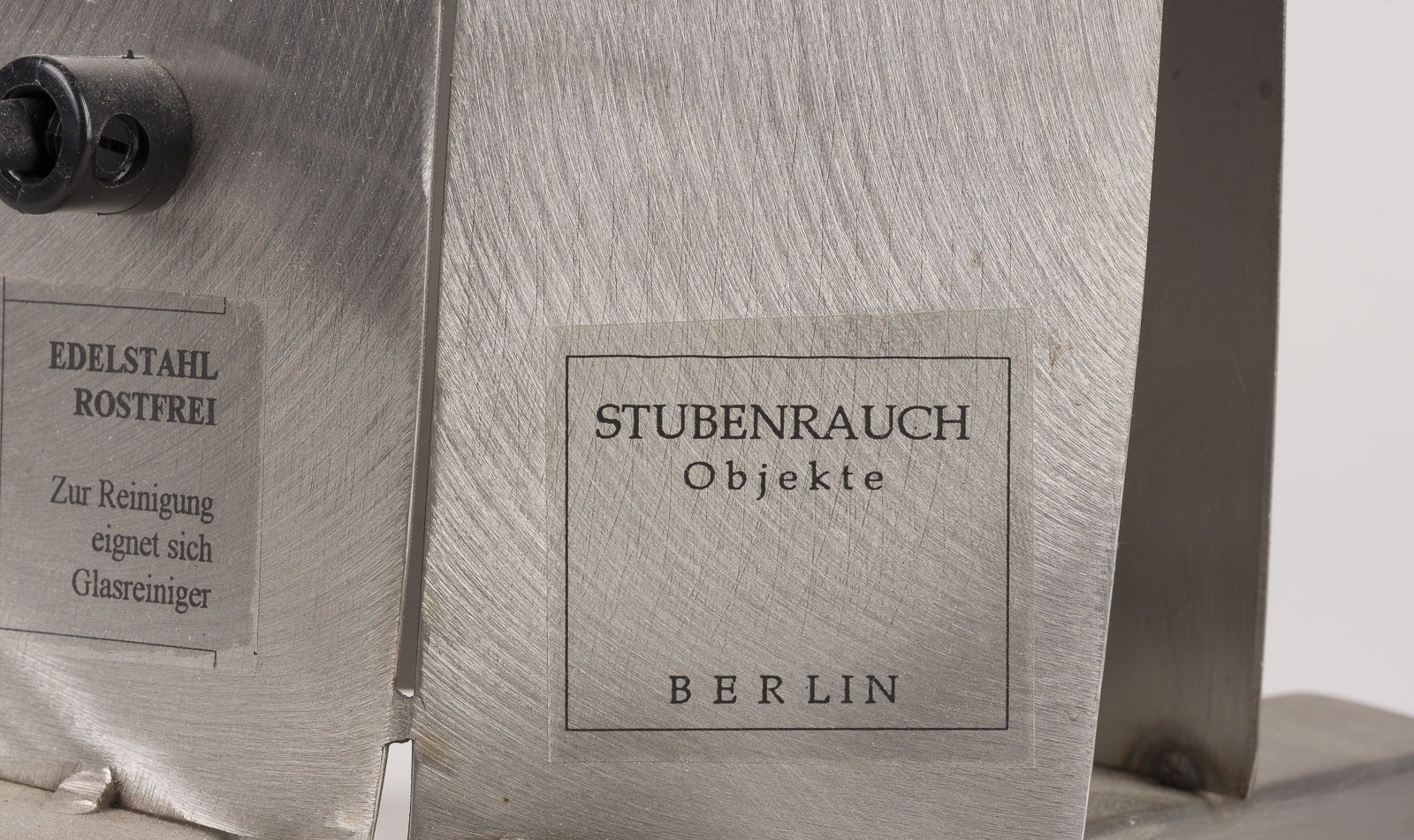 Edelstahlblech, farbiger Kunststoff, 1-flg. elektrifiziert. H. 53 cm, B. 22 cm, T. ca. 22 cm. Mit Herstelleretikett bez.. Sehr leichte Gebrauchsspuren.