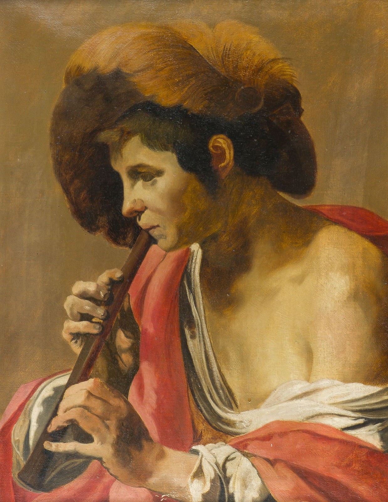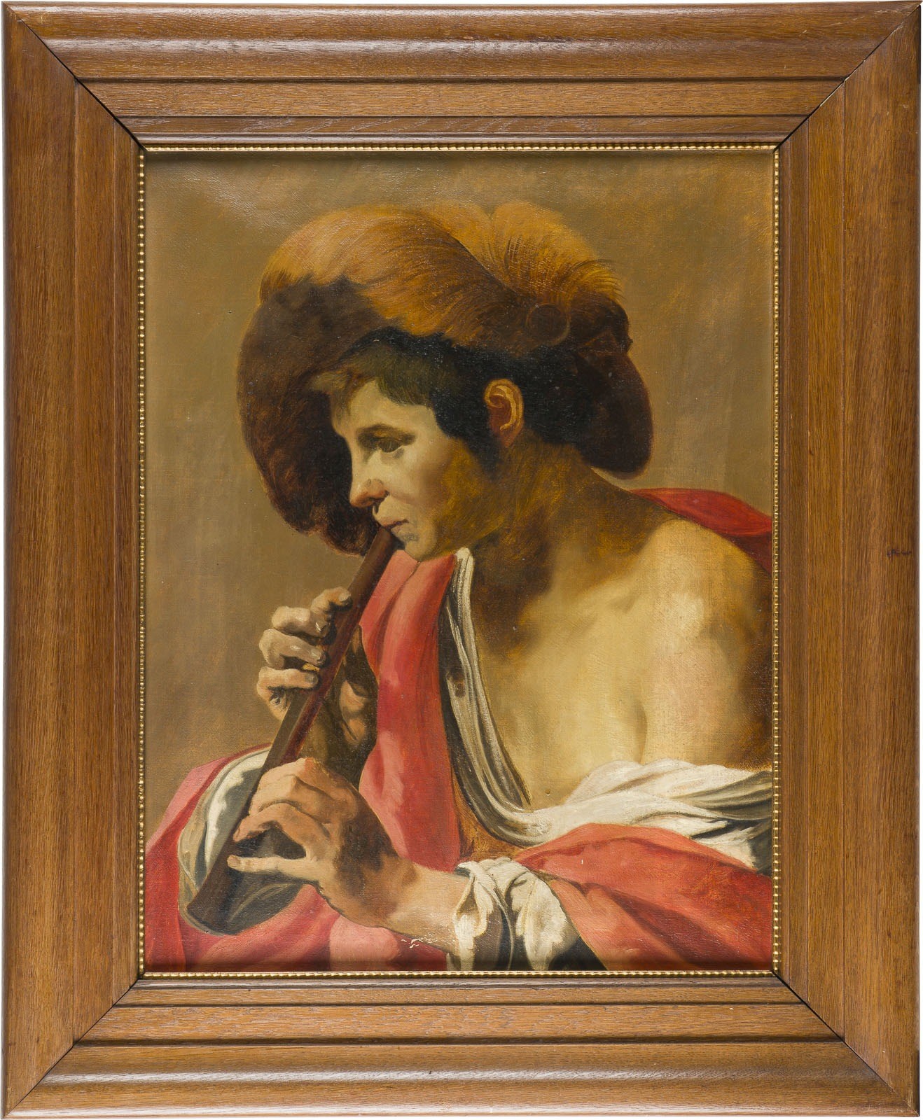 HENDRICK TER BRUGGHEN (FOLLOWER OF THE 19TH CENTURY) 1588 The Hague - 1 November 1929 Utrecht BOY PLAYING THE RECORDER Oil on canvas. 71 x 56 cm (F. 90.5 x 74 cm). Min. rest., surface soiled. Frame. Provenance: Hessian private collection.