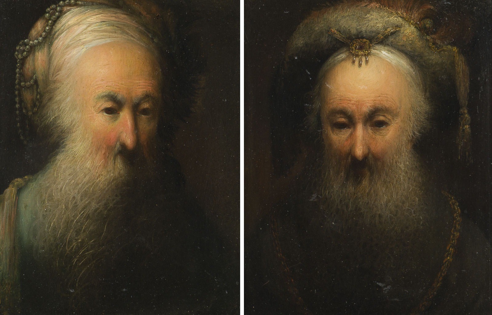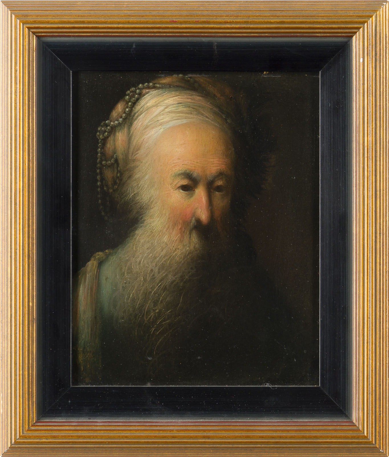 ATTRIBUTED TO CHRISTIAN WILHELM ERNST DIETRICH, GEN. DIETRICY 1712 Weimar - 1774 Dresden PAIR OF PAINTINGS: TWO PORTRAITS OF A GENTLEMAN WITH A BEARD AND TURBAN Oil on oak panel. Both: 20.5 x 16 cm (R. 30 x 25.5 cm). Each: part. min. old rest., min. old retouching. Frame. Provenance: South German private collection.
