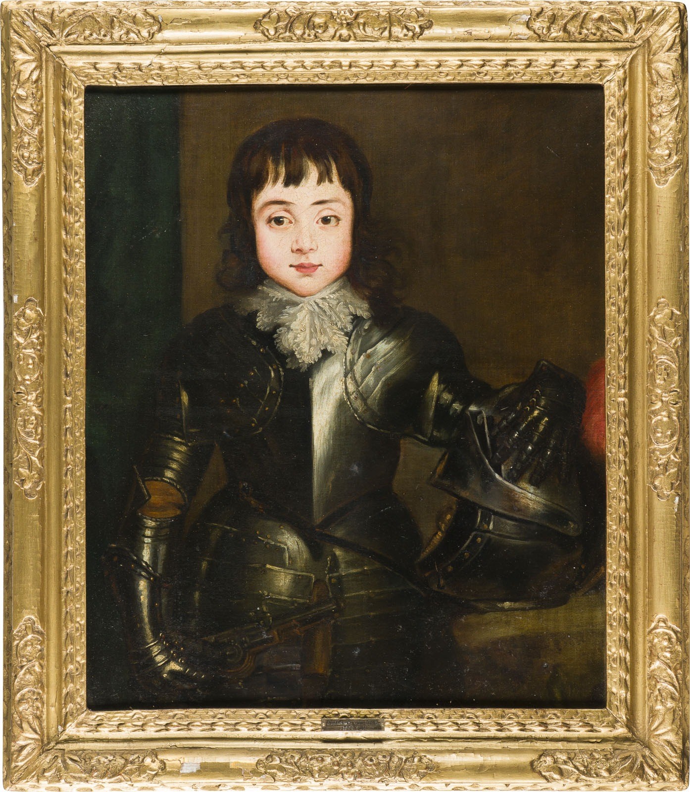 SIR ANTHONIS VAN DYCK (PROBABLY WORKSHOP) 22 March 1599 Antwerp - 9 December 1641 London PORTRAIT OF CHARLES II AS A CHILD Oil on canvas (old relined). 85 x 66 cm (F. 93.5 x 80 cm). Part. old rest., min. old retouching. Frame. Provenance: Private collection, North Rhine-Westphalia.