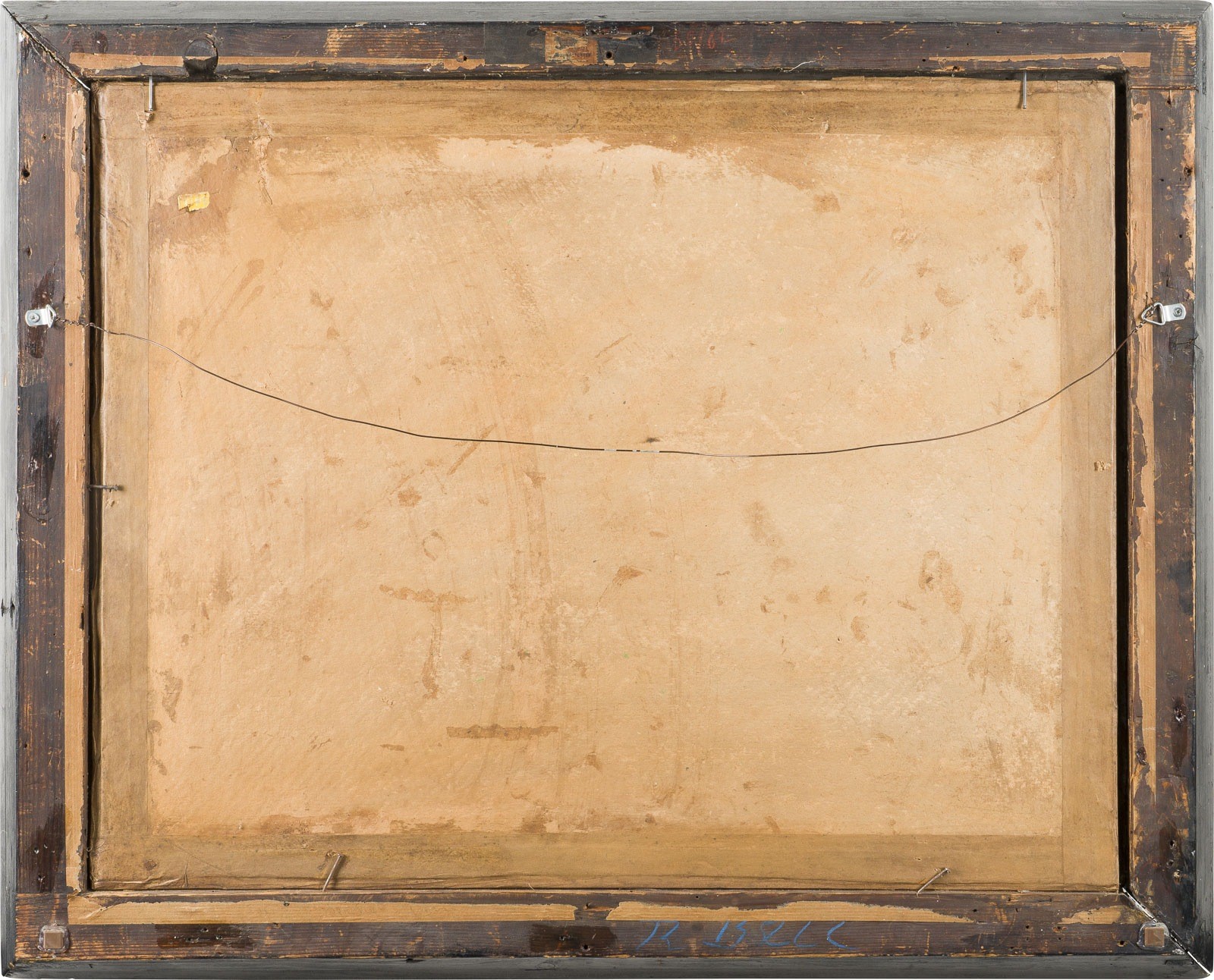 ATTRIBUTED TO CAJETAN ROOS 1690 Rome - 1770 Vienna SOUTHERN RURAL LANDSCAPE WITH SHEPHERDS AND CATTLE AT REST Oil on canvas laid down on firm board. 51 x 63.5 cm (F. 63.5 x 77 cm). Inscribed lower right by a later hand: "F. Gyusnielsctz f. Noma 82 [.]". Part. min. old rest., part. min. old retouching, slight paint losses. Frame. Provenance: International private collection.