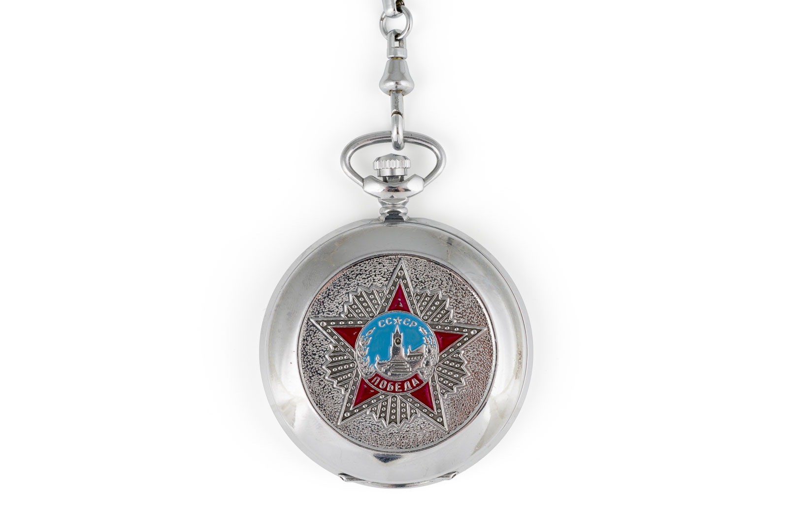 Innendeckel mit Nummer gestempelt, Metallkette, D.: ca. 49,0 mm. 1x russische Taschenuhr,