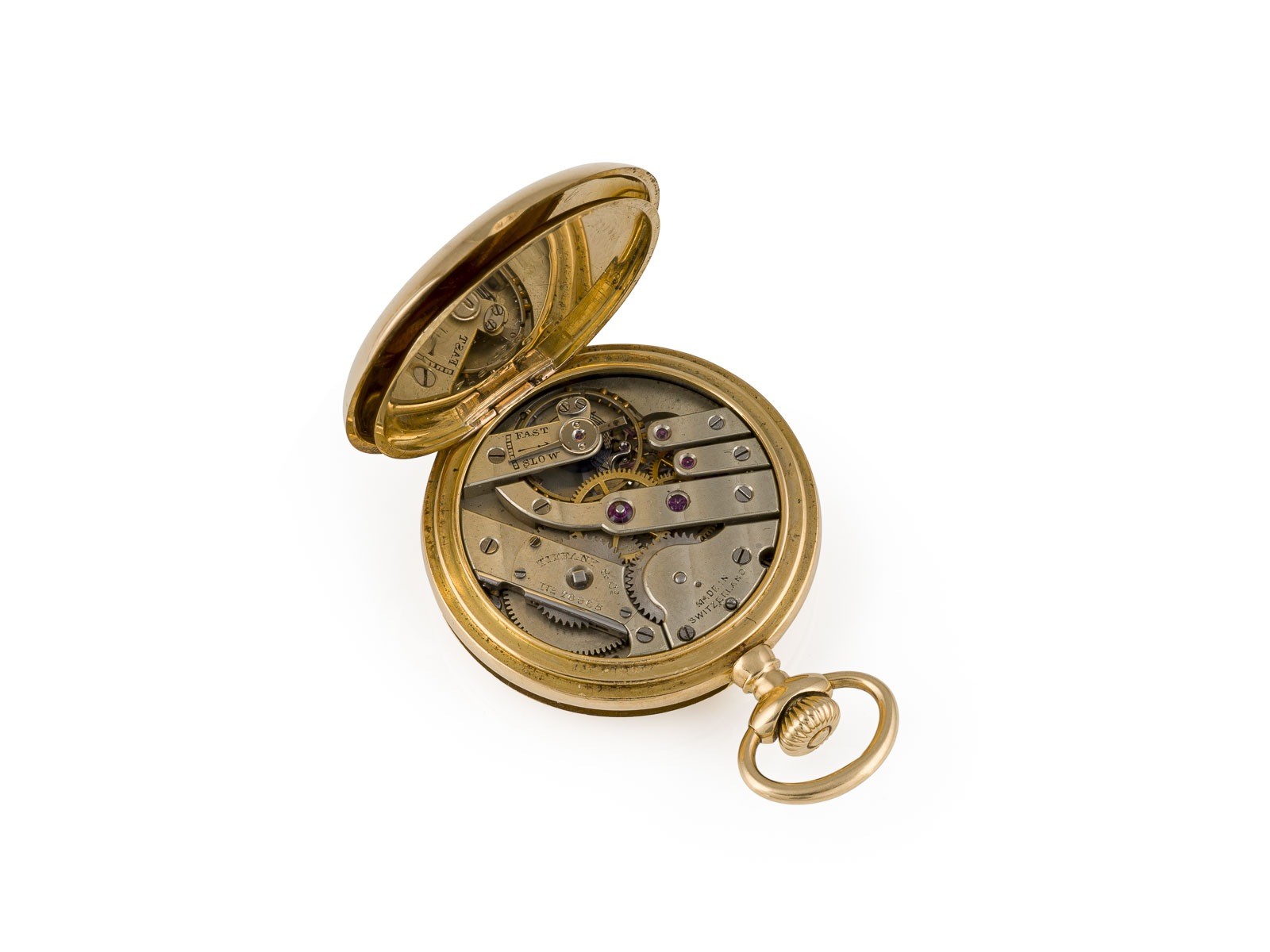 römischen und arabischen Ziffern und schmalen Zeiger. Drei Golddeckel. Werk sowie Gehäuse