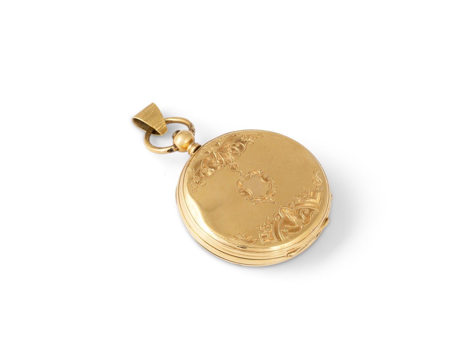Schlüsselaufzug. GG 750. Maße: L.: ca. 58,0 mm, B.: ca. 36,0 mm. Ges.-Gew.: ca. 32,6 g. 3-Deckel Taschenuhr von Vacheron Geneve mit weißem Ziffernblatt und reichlicher