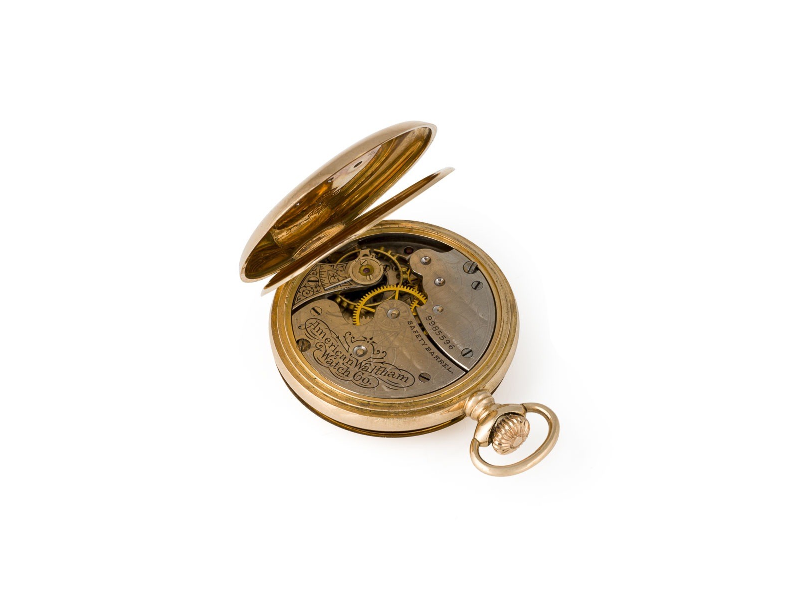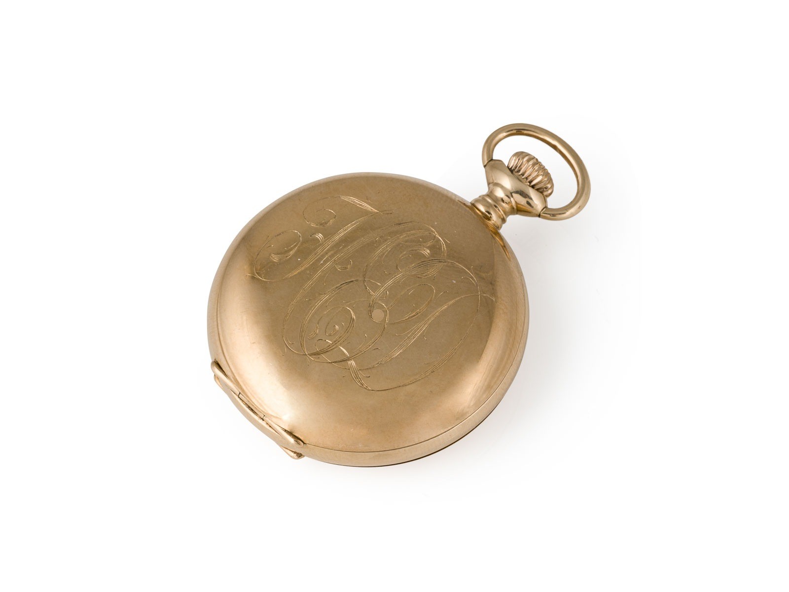 Referenznummer: 245812. Handaufzug. GG 585. D.: ca. 35,0 mm. Ges.-Gew.: ca. 35 g. American Waltham Watch Co., 9985596, 3-Deckel Taschenuhr mit einem Monogramm auf der