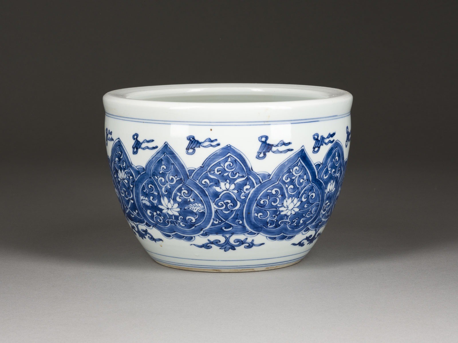 A BLUE AND WHITE 'FLORAL' JARDINIÈRE China Porcelain. H. 14.9 cm. With traces of use.