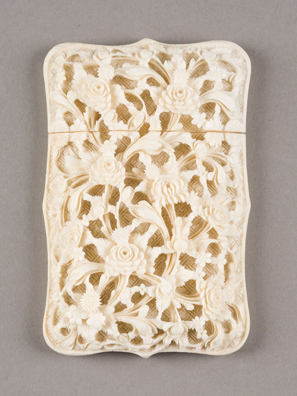 A CARVED IVORY CARD CASE AND A CARVED IVORY BRUSH POT China, early 20th century Ivory. H. 6.3-11.4 cm. With traces of use, partially damaged. CITES marketing certificate is available. Please note that due to the current CITES regulations for ivory and tortoiseshell objects, unrestricted trade is only permitted within the European Community. An export license is required for shipment to third countries. Please inform yourself about the current import regulations for ivory and tortoiseshell in your country. It is currently not possible to export ivory to the USA, Canada or England. This item is not legal to sell in the UK.