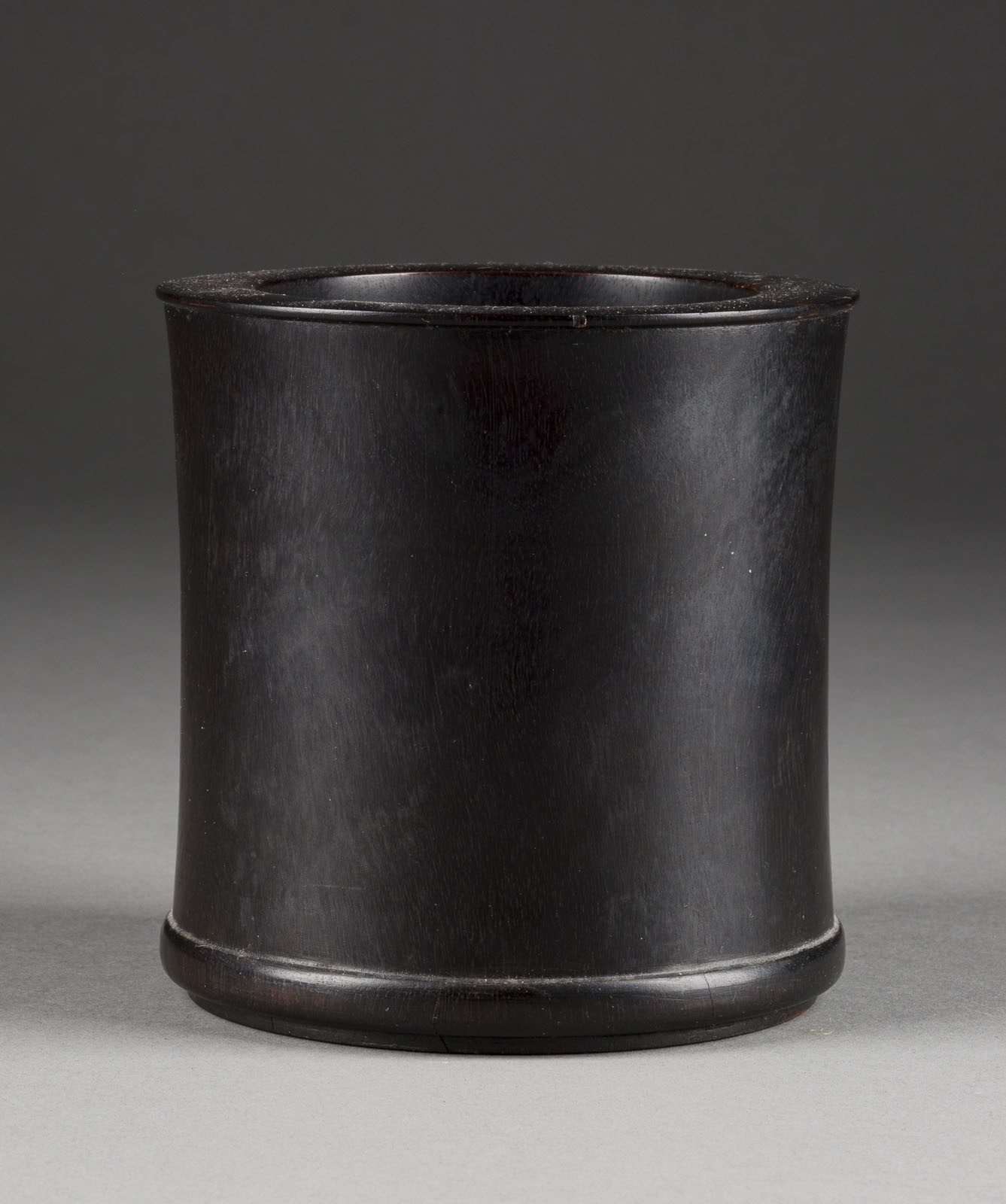 A WOOD BRUSHPOT China, 19th/20th century Wood. H. 11.3 cm. With traces of age and use, partially cracked. Provenance: From an old private collection in North Rhine-Westphalia.