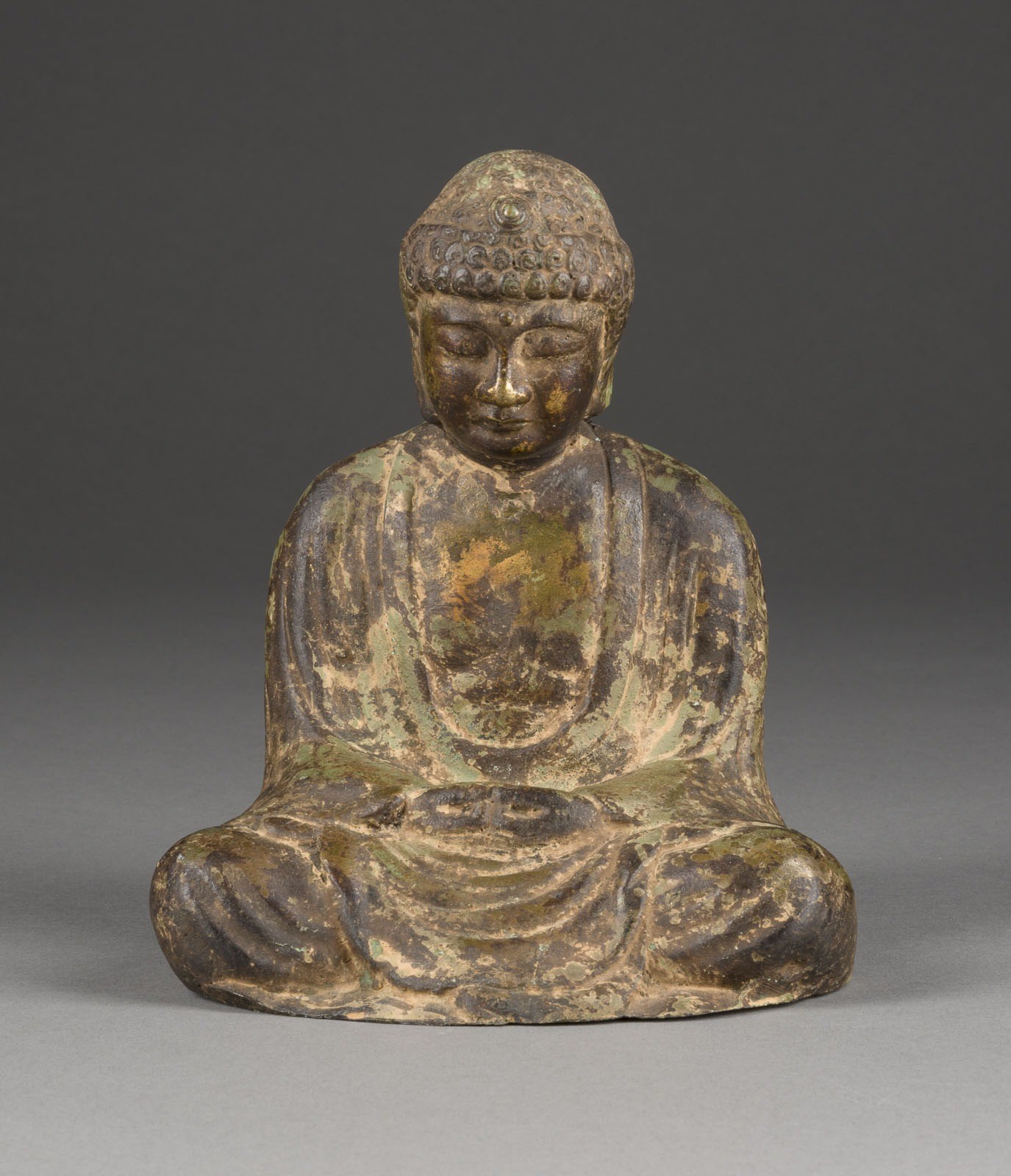A BRONZE SEATED AMIDA BUDDHA Japan, Meiji Period Bronze. H. 16.8 cm. With traces of age and gilding.