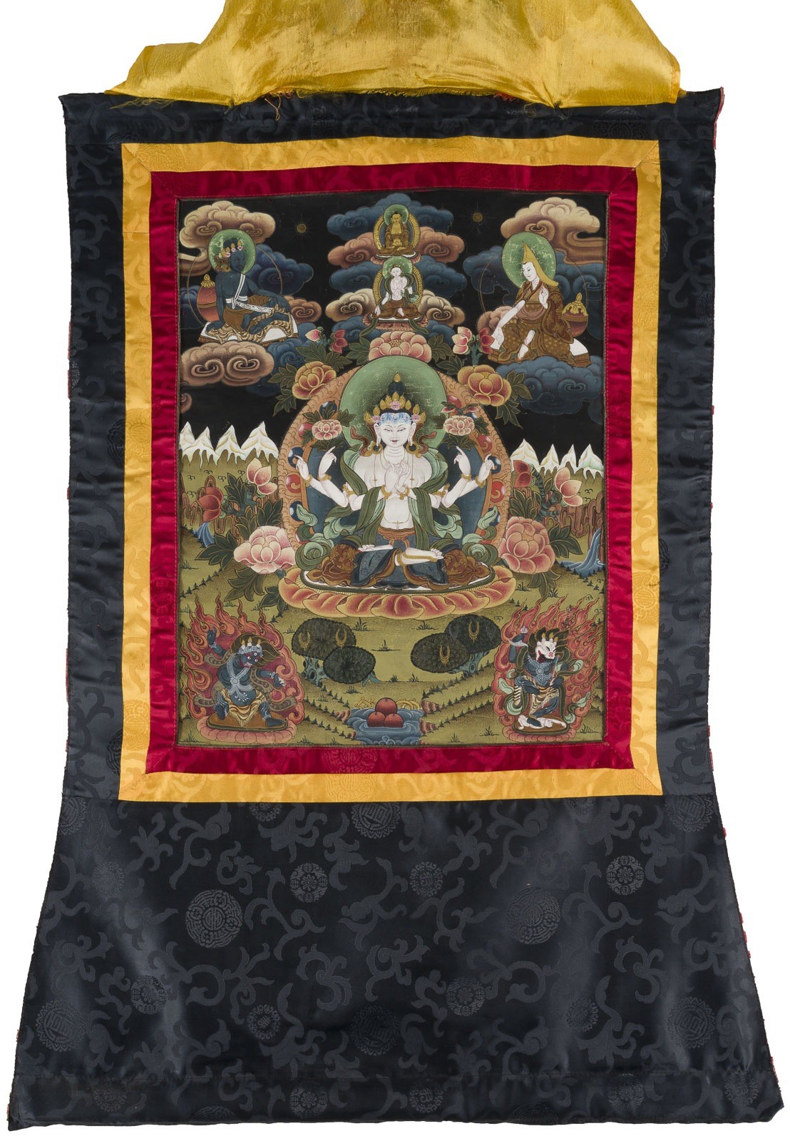 EIN THANGKA MIT DARSTELLUNG EINES BODHISATTVA