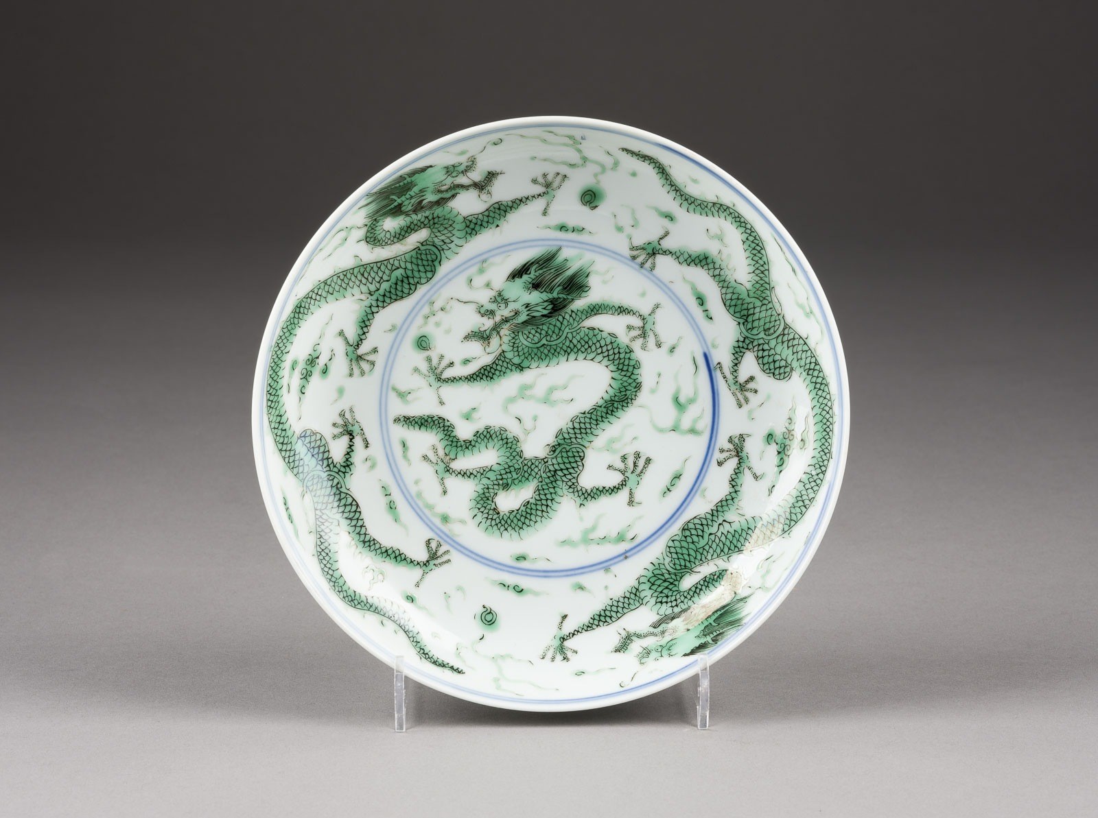 EINE GRÜN EMAILLIERTE 'DRACHEN'-TELLER