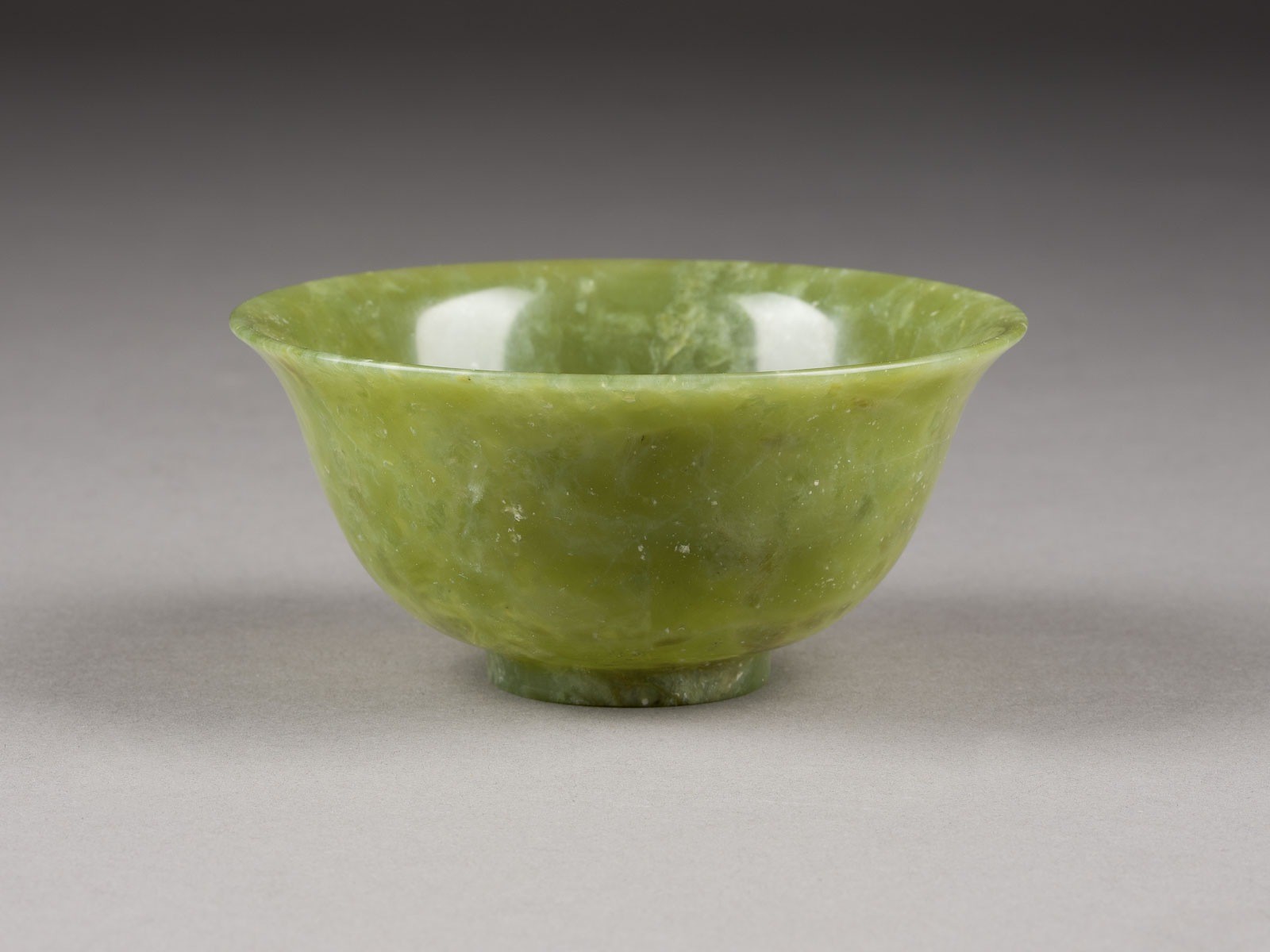 A GREEN SERPENTINE BOWL China, 20th century Serpentine. H. 4.6 cm. With traces of use, slighlty cracked.