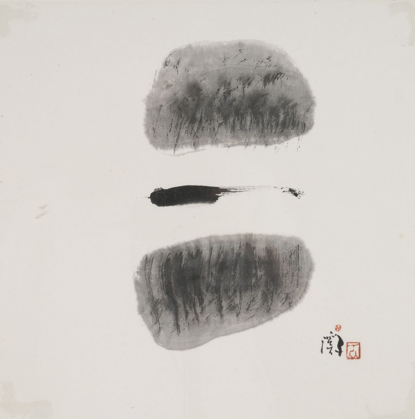 XIAOBAI SU 1949 CHINA UNTITLED (INK ABSTRACT) (C. 1995) Ink on paper, framed and under glass. 37 x 36.5 cm. Signed by the artist and with two seals lower right. Overall in good condition.