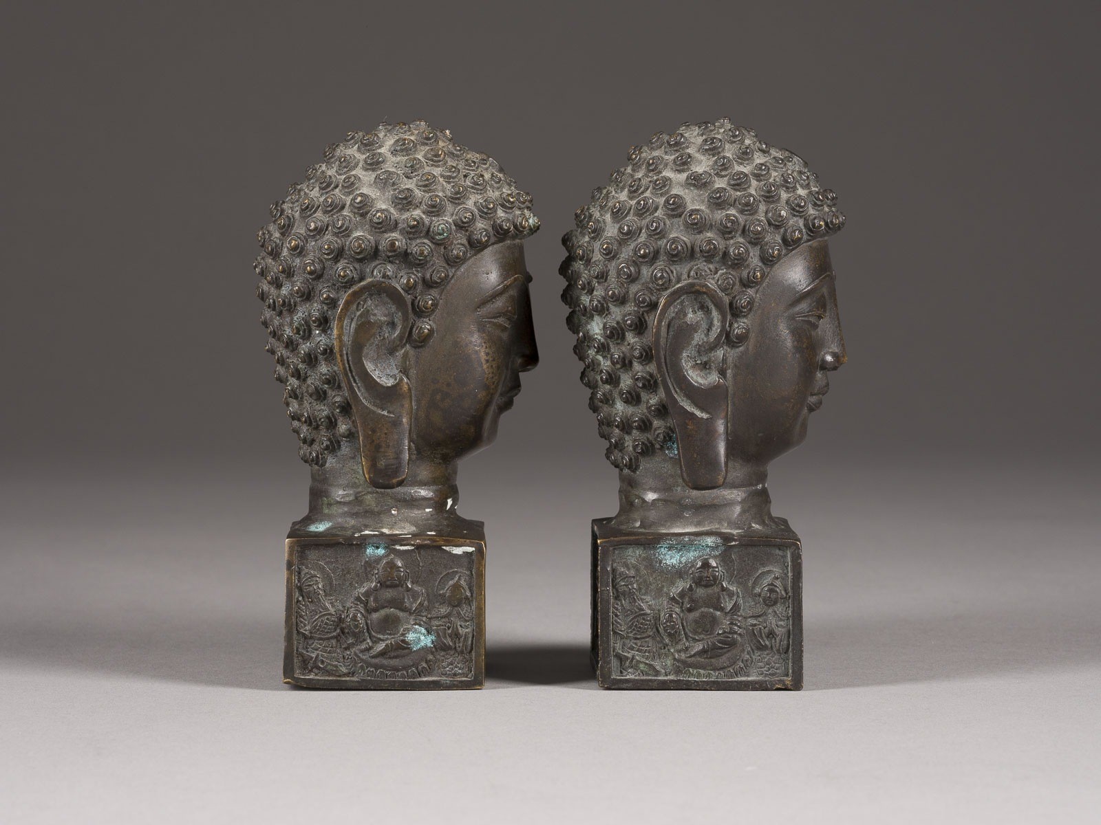 PAAR BUDDHAKÖPFE ALS SIEGEL AUS BRONZE