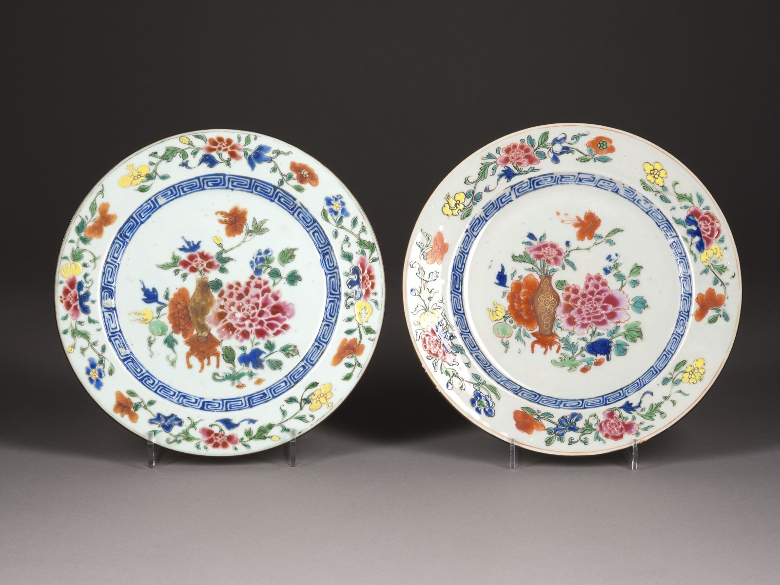 PAAR FAMILLE-ROSE-TELLER MIT BLUMENDEKOR