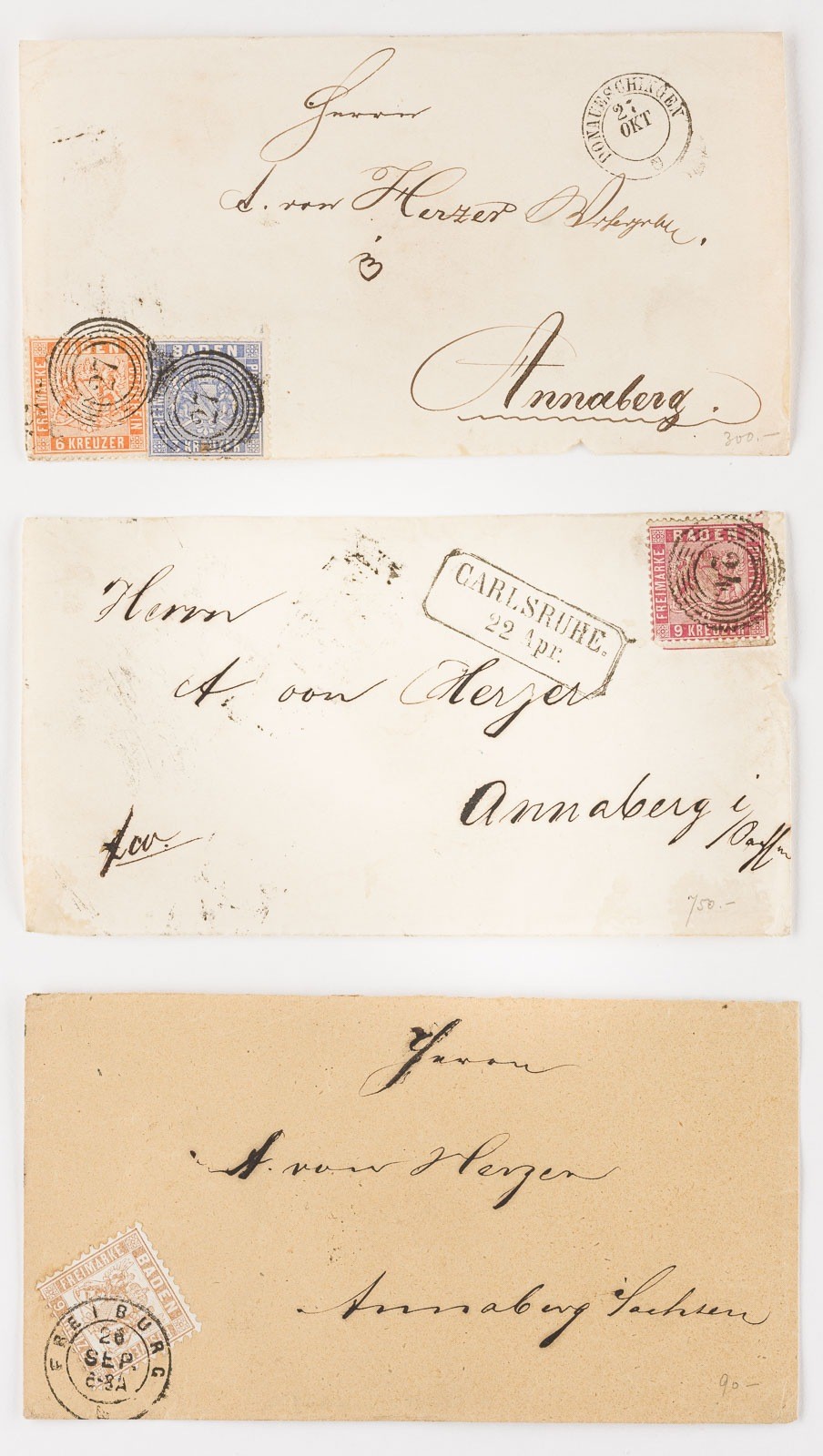 Baden Drei Inlandsbriefe nach Annaberg: 9 Kreuzer nebst Stempel 'FREIBURG 26 SEP. 6-8A; 3