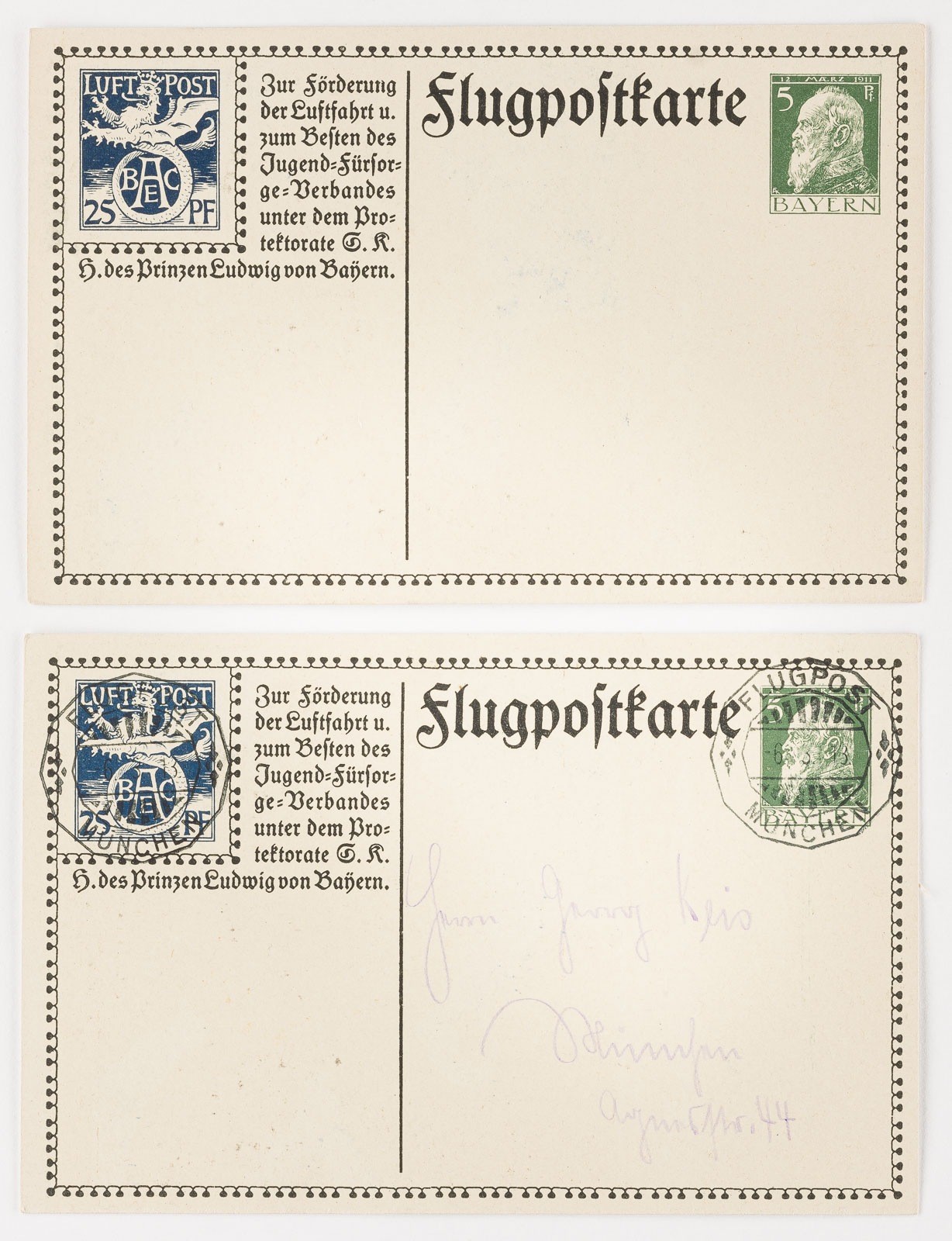 Bayern Konvolut 20 Wertmarken sowie zwei Flugpostkarten