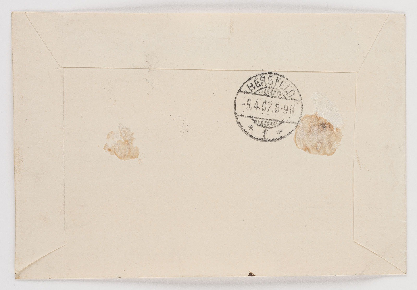 Deutsch-Neuguinea Einschreibebrief aus Herbertshöhe, Deutsch-Neuguinea, nach Hersfeld (Hessen), gelaufen 13/2 1907. Frankatur: Mischfrankatur aus 4 Marken der Kaiseryachtausgabe "Deutsch-Neu-Guinea", 1 Mark, 2 Mark, 3 Mark und 5 Mark nebst 8 Kreisstemnpel 'HERBERTSHÖHE DEUTSCH-NEUGUINEA 13/2 07' teils übergehend auf Brief und Marken. Roter R-Einschreibezettel 'Herbertshöhe / Deutsch-Neu-Guinea - No. 423', verso Kreisstempel 'HERSFELD -5.4.07. 8-9N'.