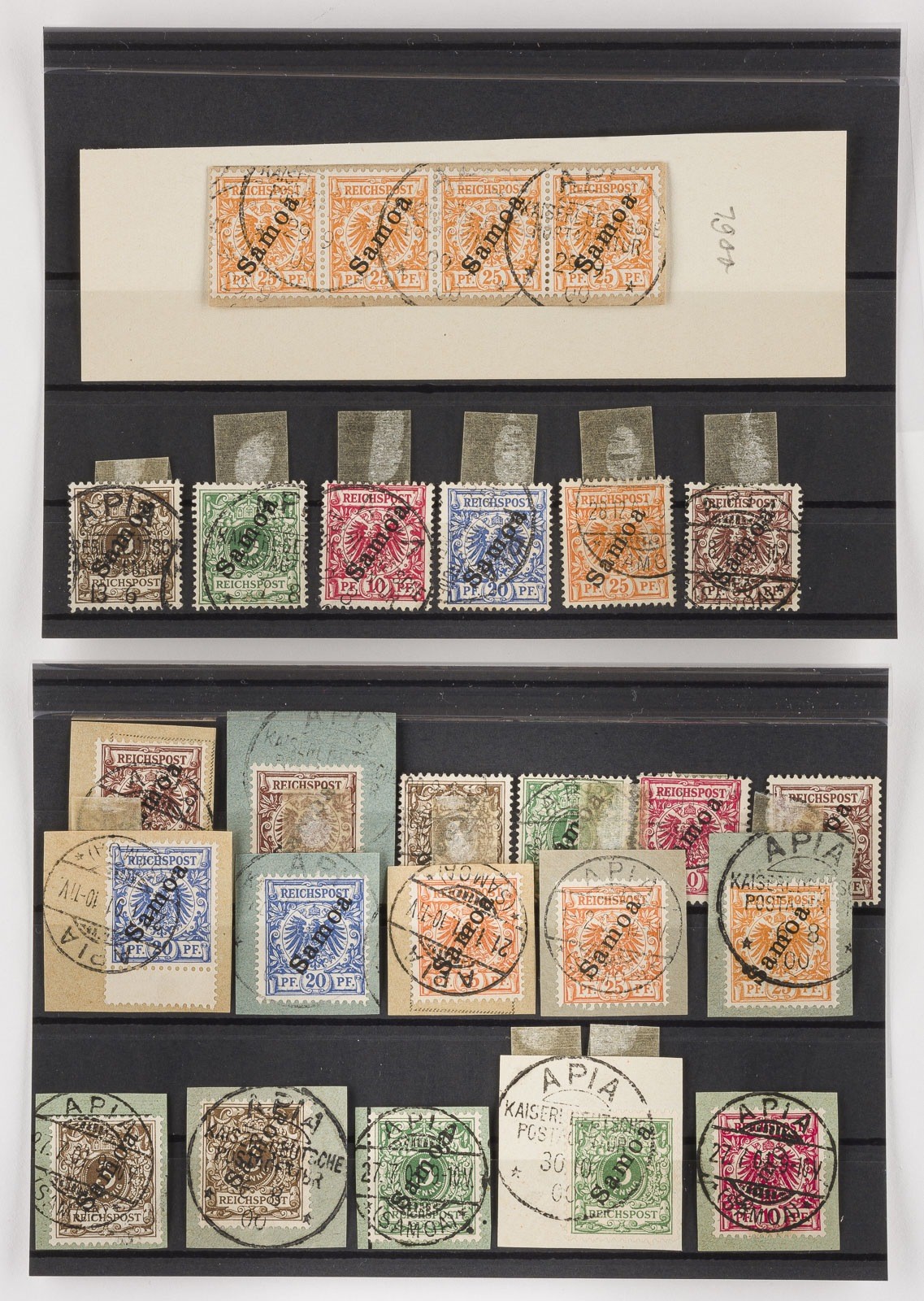 schwarzem Aufdruck 'Samoa', partiell auf Briefausschnitt, Misch- und Mehrfachfrankaturen.