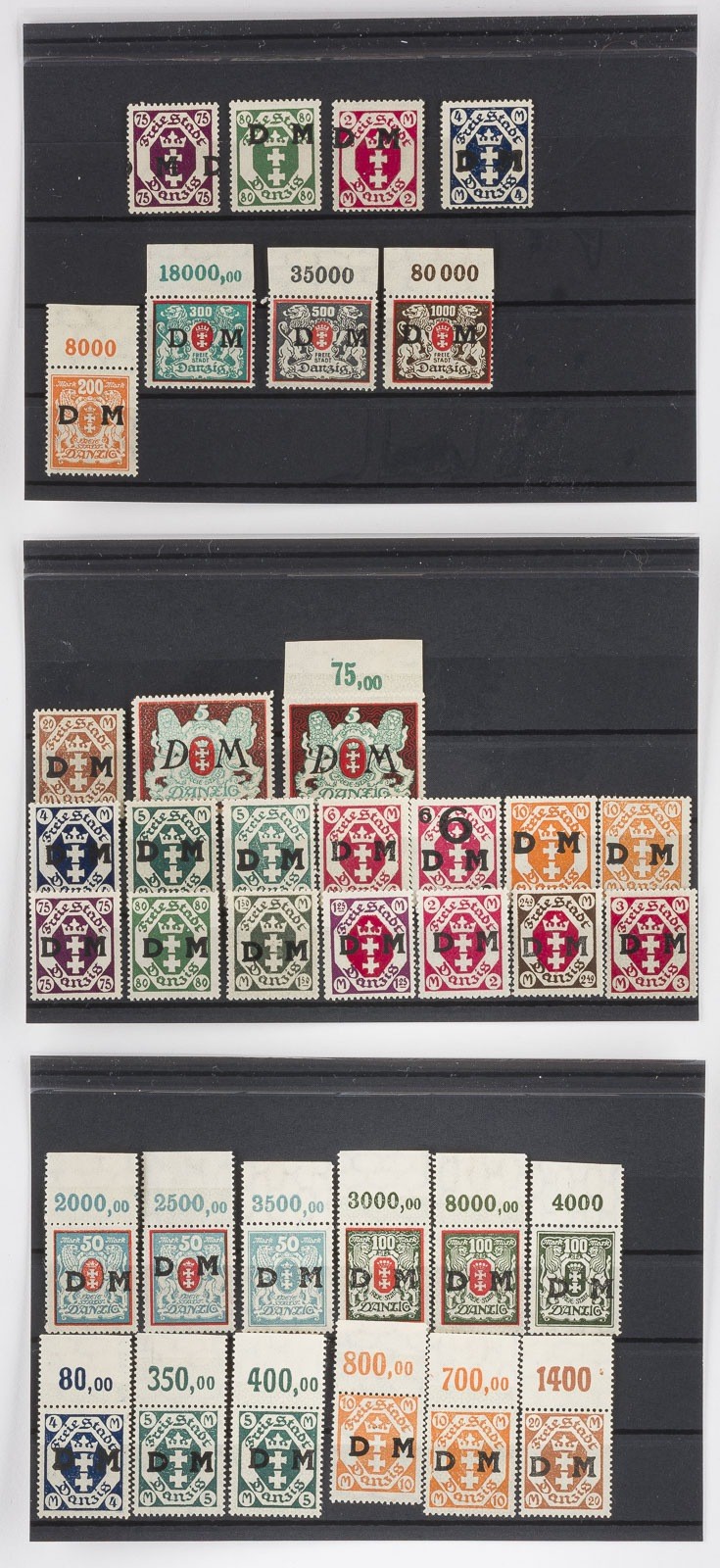 Fehldrucke, Doppel- bzw. kopfstehende Aufdrucke und weitere Abarten.