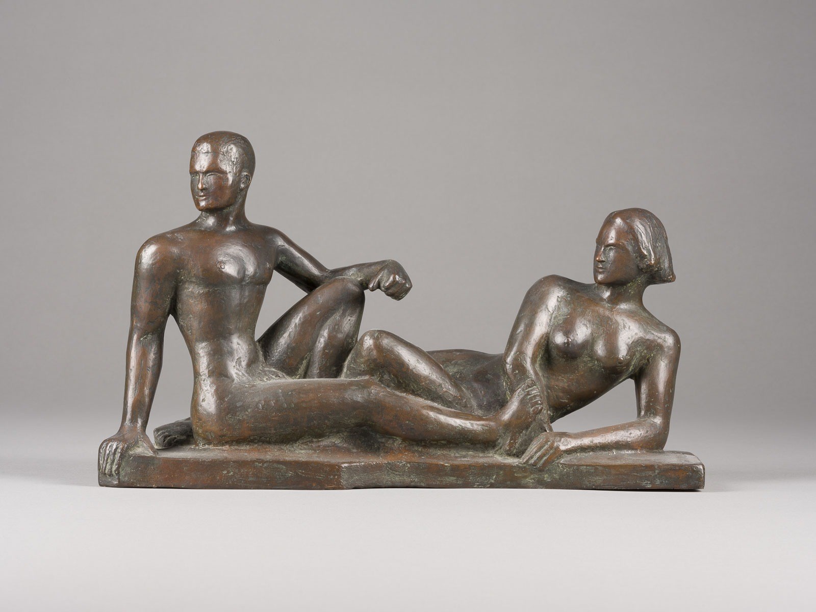 HANS GERWING 1893 Gelsenkirchen - 1974 Düsseldorf LIEING LOVERS Bronze, dark patina. H. 22, W. 37, D. 10 cm, weight approx. 9.21 kg. Signed 'Hans Gerwing' on the plinth. Minimal loss of patina.