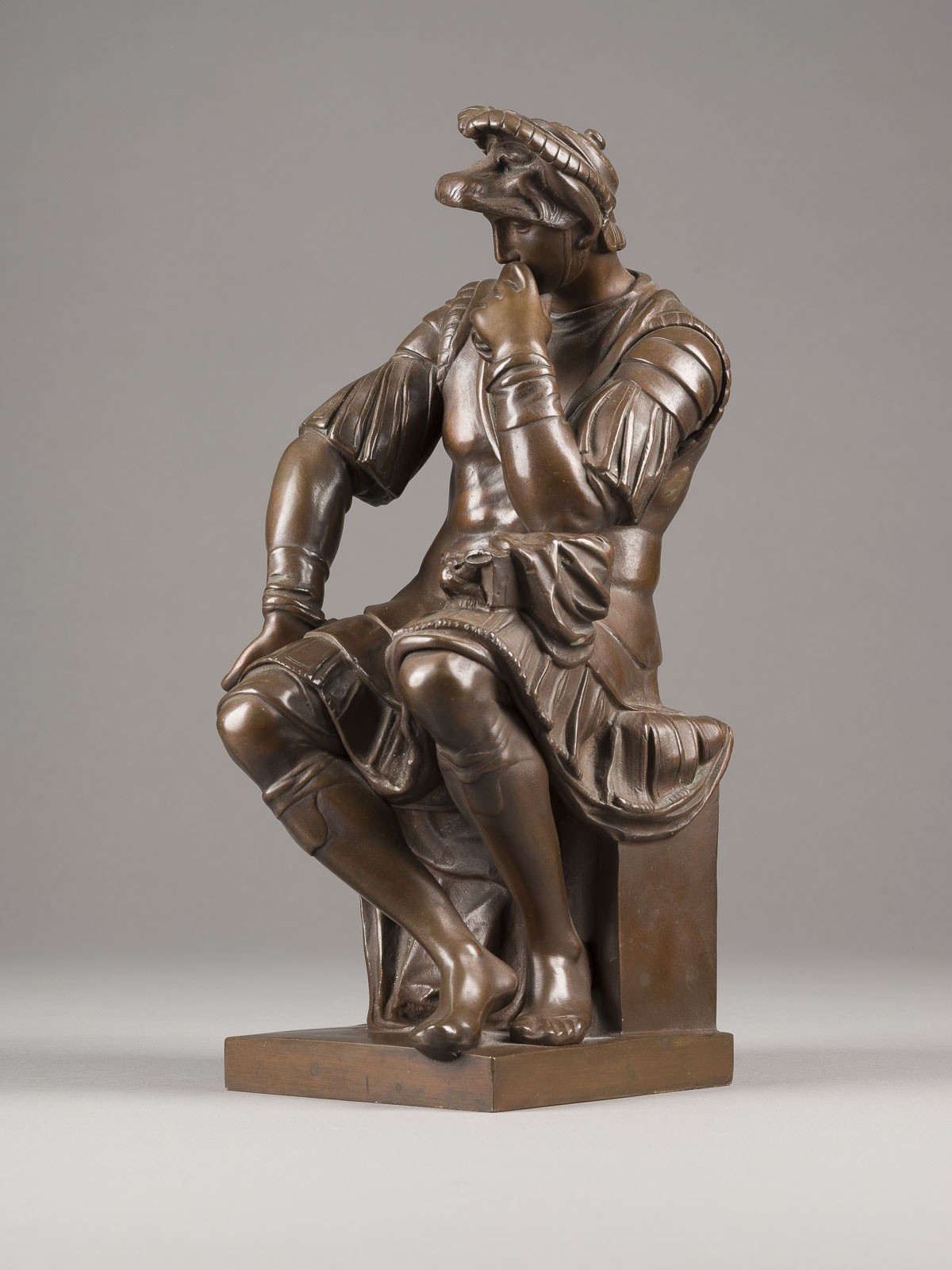 GERMAN SCULPTOR Active in the early 20th century 'LORENZO DE' MEDICI' Bronze, dark patina. H. 27, W. 10, D. 11.5 cm, weight approx. 4.6 kg. Foundry mark 'R. Bellair & Co. Berlin' on the back. Based on the original by Michelangelo in the Medici Chapel of San Lorenzo in Florence. Minor bumped.