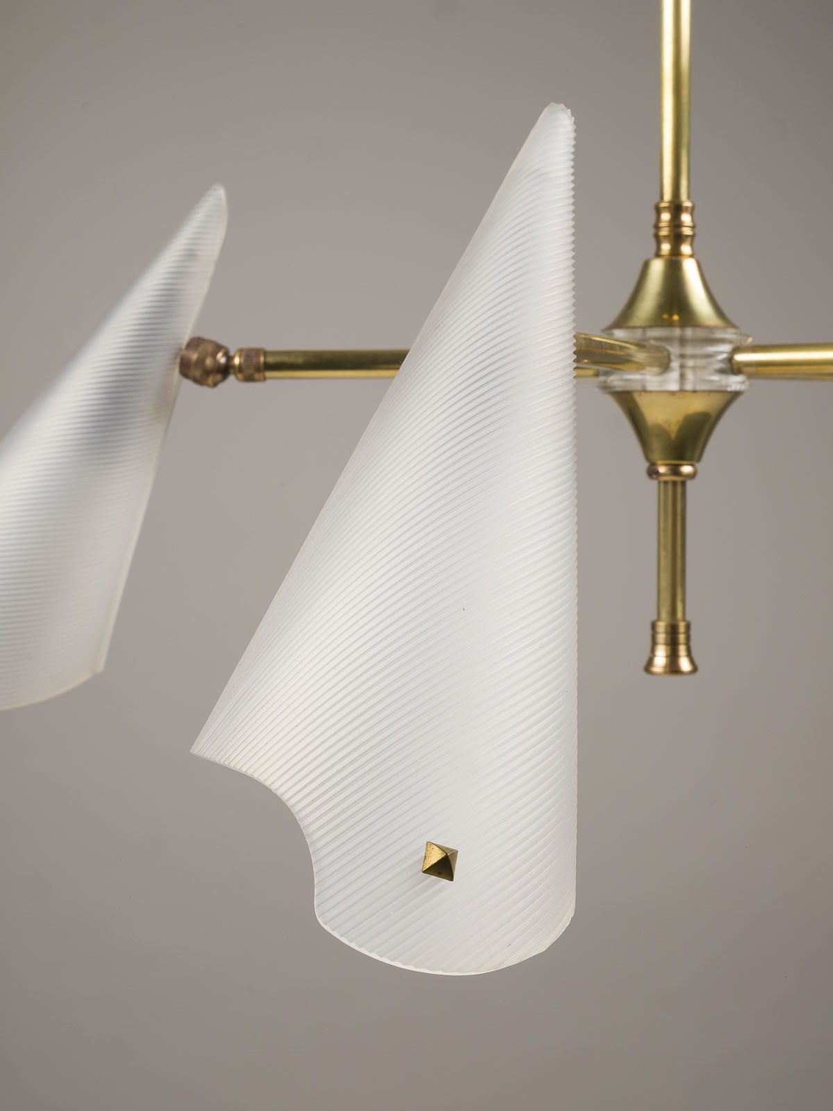 MAISON ARLUS (ATTR.) France 1950S CHANDELIER France, probably Maison Arlus, circa 1955 Brass, adjustable perspex shades, 5-light electrified, untested. L. approx. 60 cm, D. max. approx. 60 cm. Some age related traces of use. Only EU in-house shipping available.