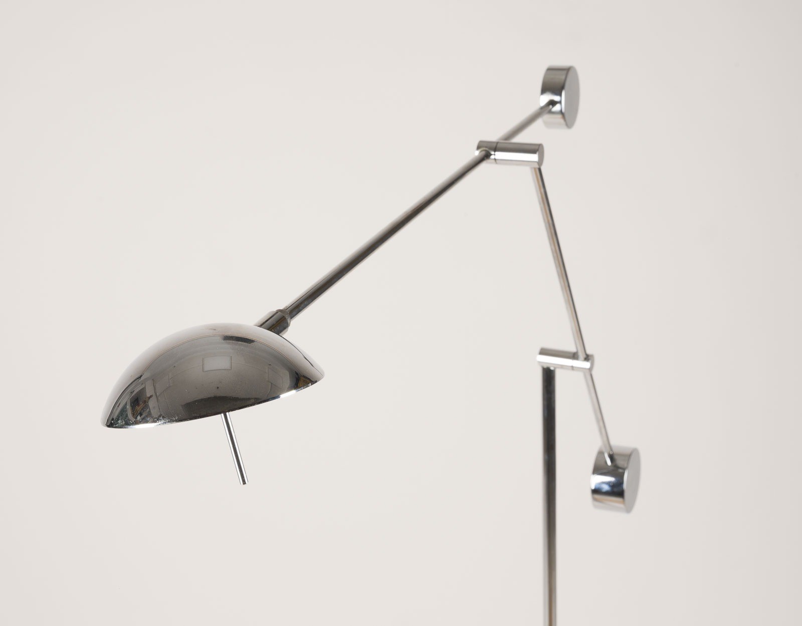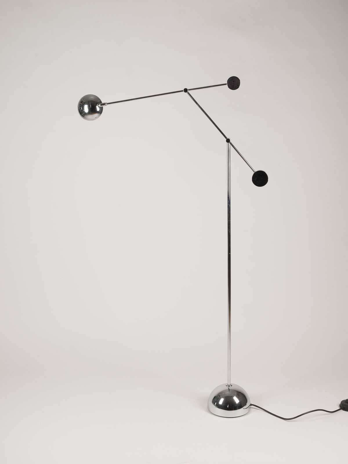 GOFFREDO REGGIANI (IN THE MANNER OF) COUNTERWEIGHT FLOOR LAMP Germany, Sölken Leuchten, circa 1980 Chrome-plated brass, single-light electrified, multi-adjustable. H. max. 172 cm, D. 17 cm (base). Marked underneath 'Sölken Leuchten' (label). Slight signs of use. No in-house shipping available.