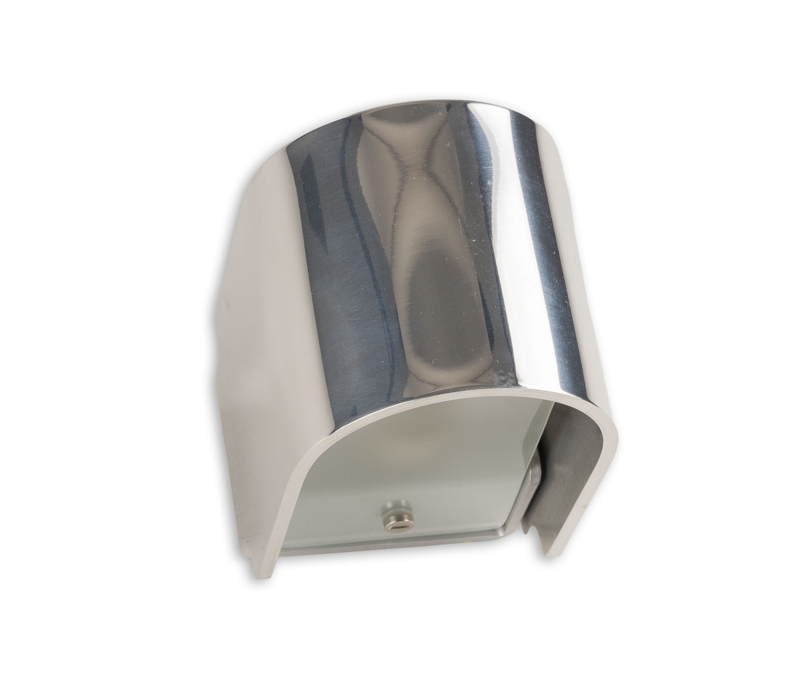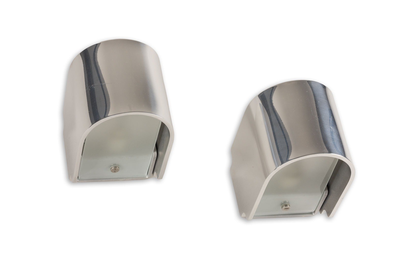 TOBIAS GRAU 1957 Hamburg PAIR OF 'SIMPLE' WALL LIGHTS Germany, Tobias Grau GmbH, designed in 2006 Anodised and polished aluminium, frosted glass, each single-light electrified. H. 10 cm, W. 10 cm, D. 15,5 cm. Some light signs of use.