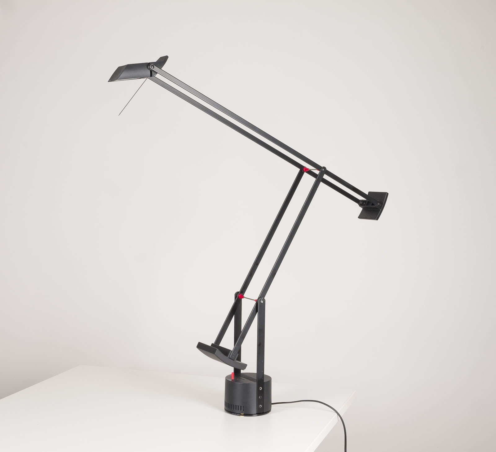 RICHARD SAPPER 1932 Munichn - 2015 Milan 'TIZIO PLUS' DESK LIGHT Italy, Artemide, Design of 1972, this version produced from 1990 Lacquered metal, plastic, single-light electrified, with dimmer switch, H. max 115 cm, D. 11 cm (base). Marked underneath 'Modello Tizio Plus Design R.Sapper'. Minor signs of use.