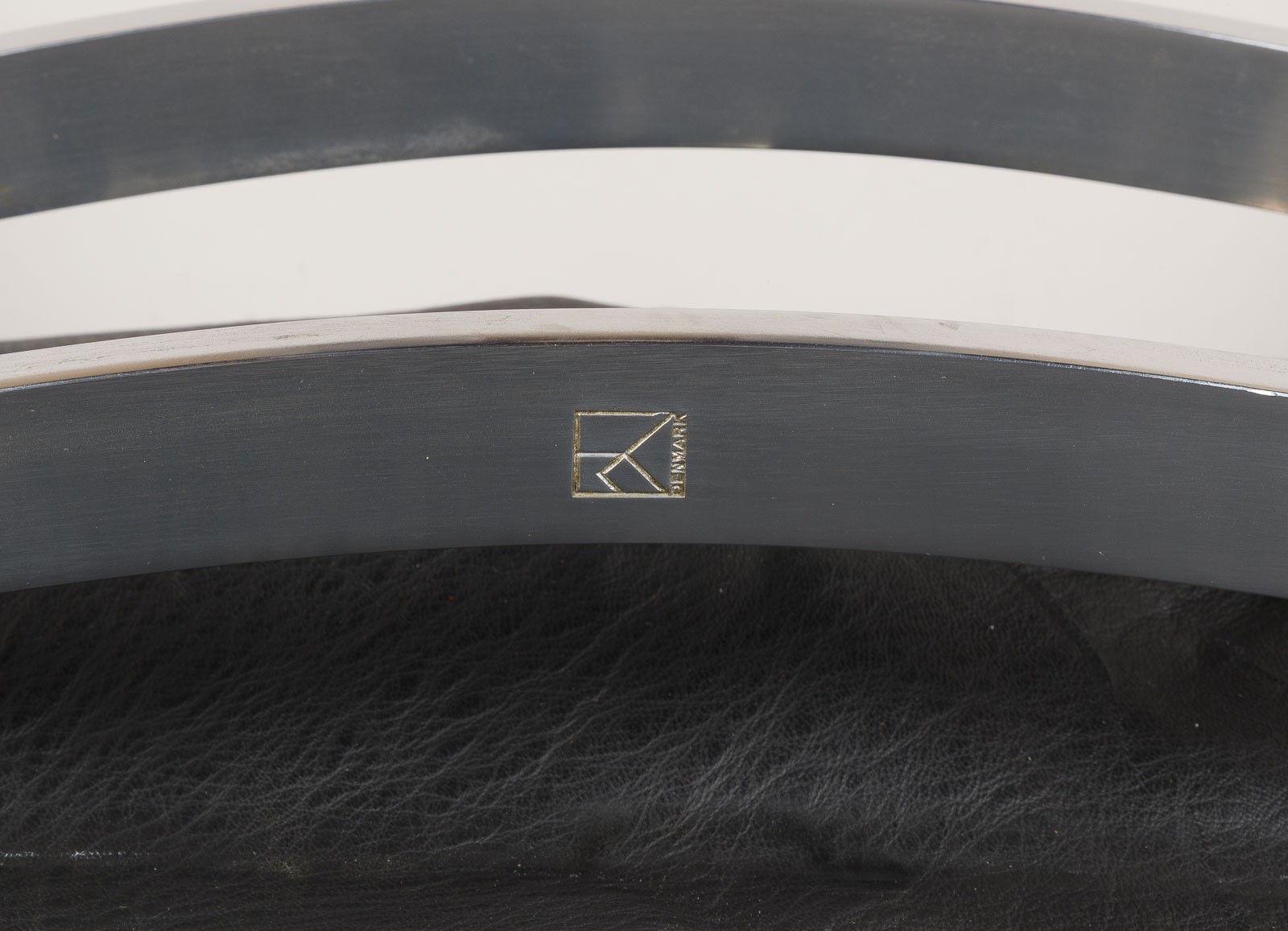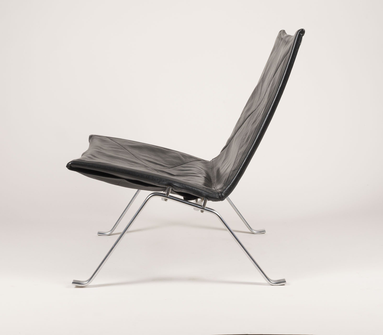 POUL KJAERHOLM 1929 Oestervra - 1980 Hilleroed EASY CHAIR 'PK 22', KOLD CHRISTENSEN Denmark, E. Kold Christensen, Design of 1955 Spring steel, matt chrome-plated, black leather upholstery. H. 72 cm, W. 63 cm, D. 65 cm. Marked 'Kold Christensen' (embossed) on the frame. Only light traces of use. No in-house shipping available.