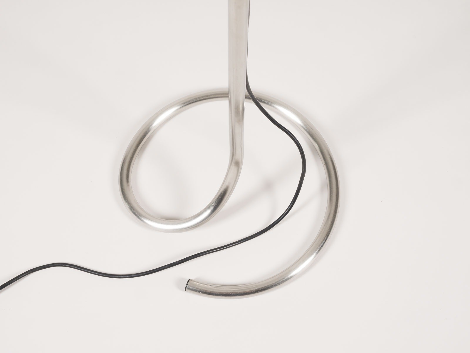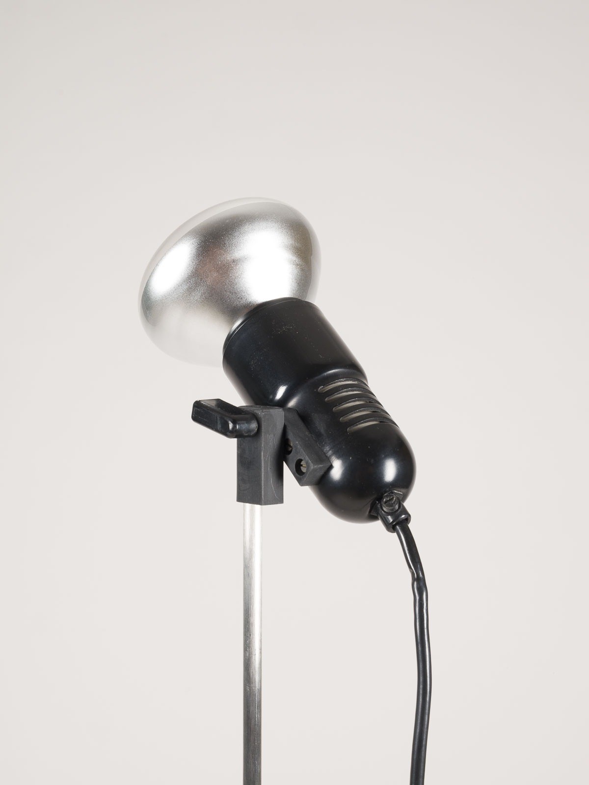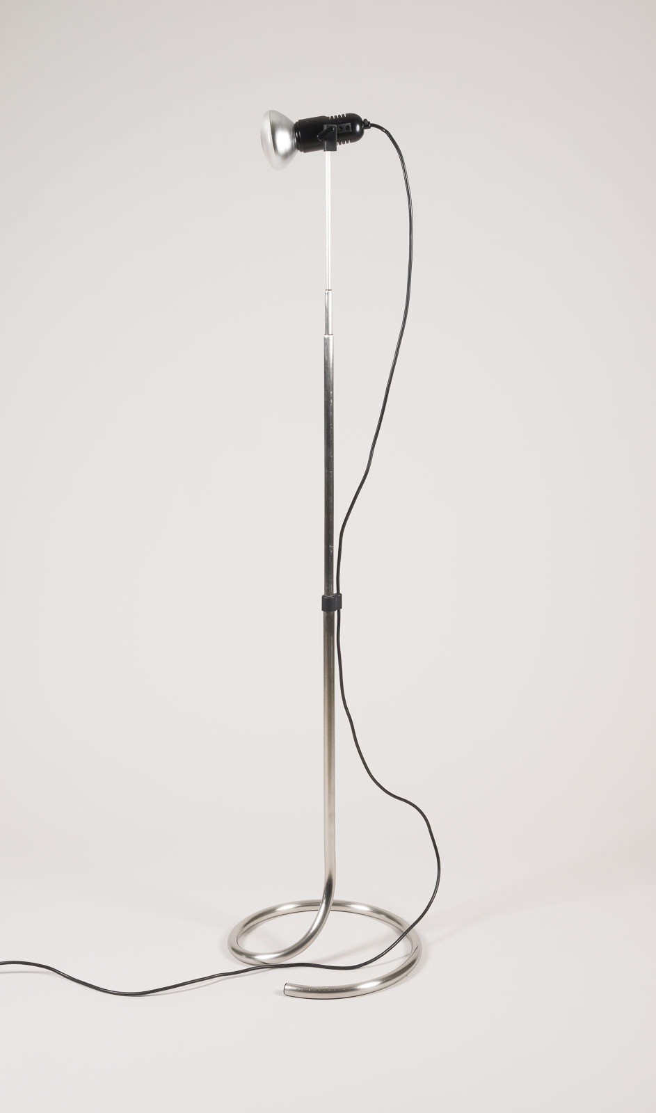ELIO MARTINELLI 1921 Lucca - 2004 ibid. 'TELESCOPIO' FLOOR LAMP Italy, Martinelli Luce, Design of 1972 Stainlesss steel, lacquered aluminium, plastic, stepless height-adjustment, single-light electrified. H. approx. 115-185 cm, D. max. 36 cm. Some minor signs of use. Literature: Elio Martinelli e Martinelli Luce, Mailand 2018, fig. p. 149. No in-house shipping available.