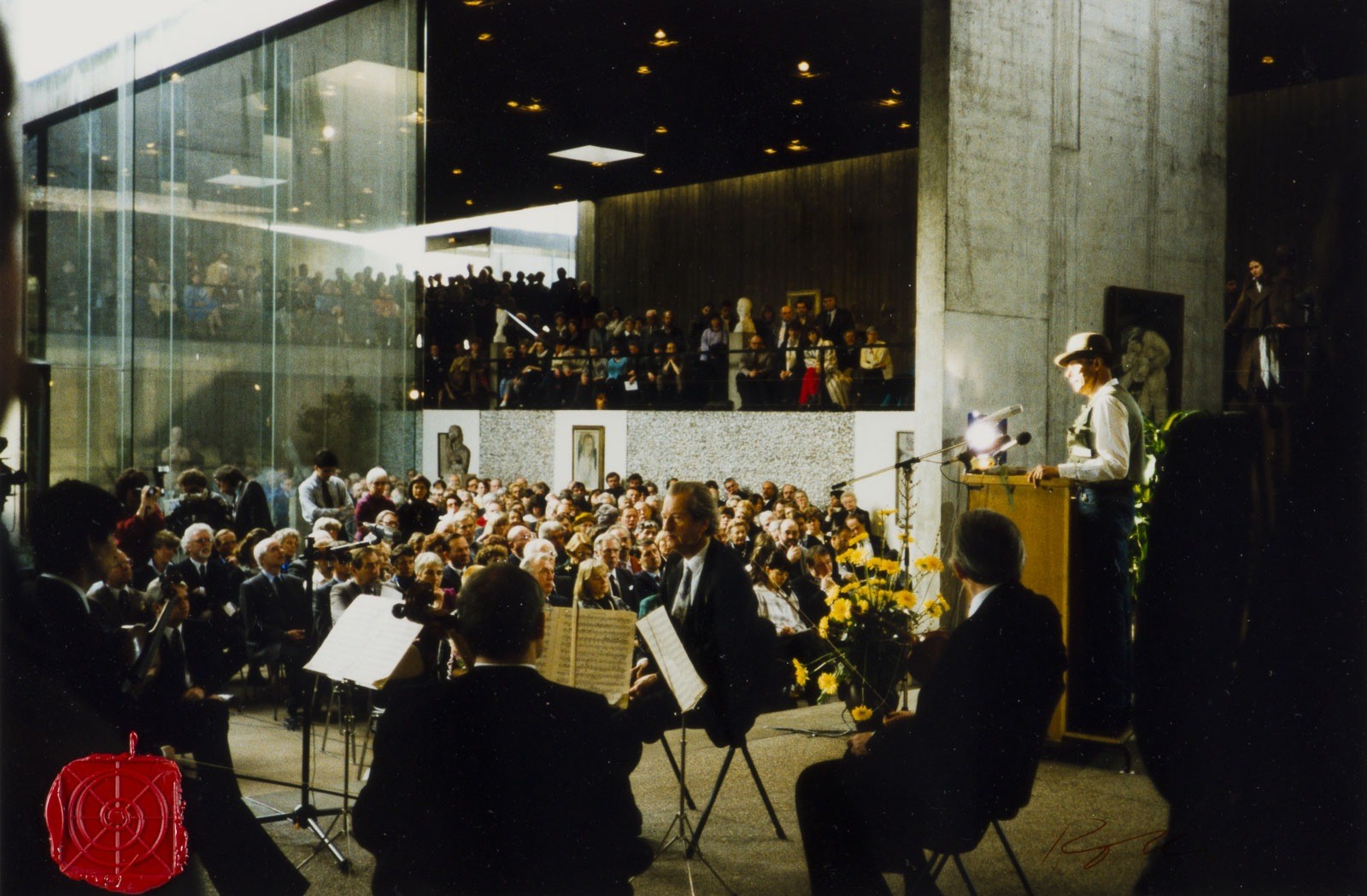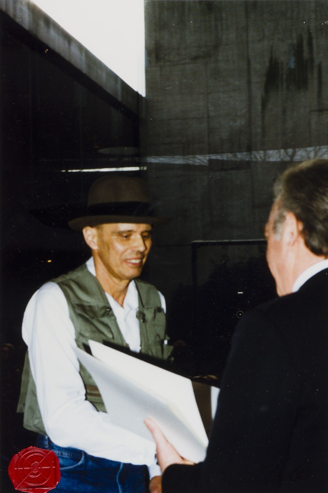 ROTAR (ROBERT ROTAR) 1926 Berlin - 1999 Düsseldorf COLLECTION OF 3 PHOTOGRAPHS - BEUYS AT MUSEUM LEHMBRUCK IN DUISBURG Photographs. Frame dimensions each 34.2 x 44.2 cm. Photographs each 20 x 30.2 cm. Each signed in fibre pen 'ROTAR' at lower right and with artist's signet as stamp at lower left. Each inscribed on the verso. Mounted on grau background and framed behind glass (unopened). Provenance: Private collection in the Bergisch region.