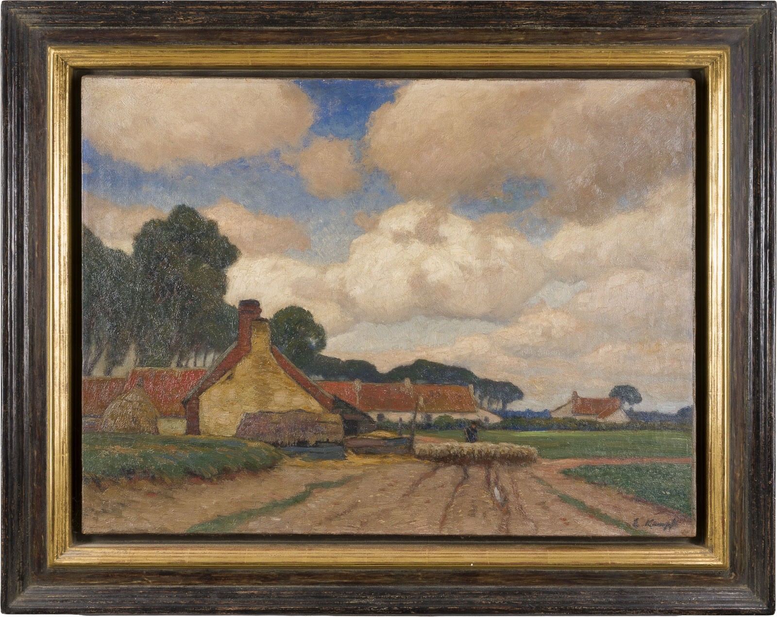 EUGEN KAMPF 1861 Aachen - 1933 Dusseldorf ON THE VILLAGE STREET Oil on canvas. 60 x 80 cm (f. 79 x 99 cm). Signed lower right. Framed.